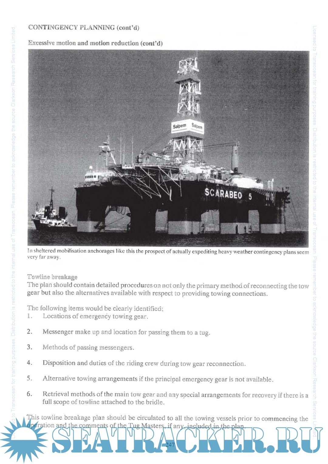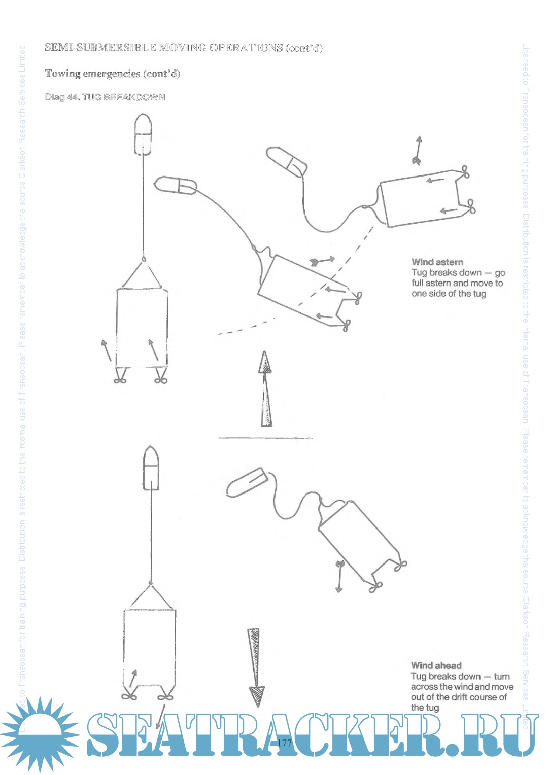 In the majority of cases the semi-submersible will be manned and its Master will direct and oversee the activities of the tug or tugs involved. In this role they (the tugs) follow the courses and navigate as directed by the tow and are to some extent acting in the role of harbour tugs towing a vessel under the direction of a pilot.