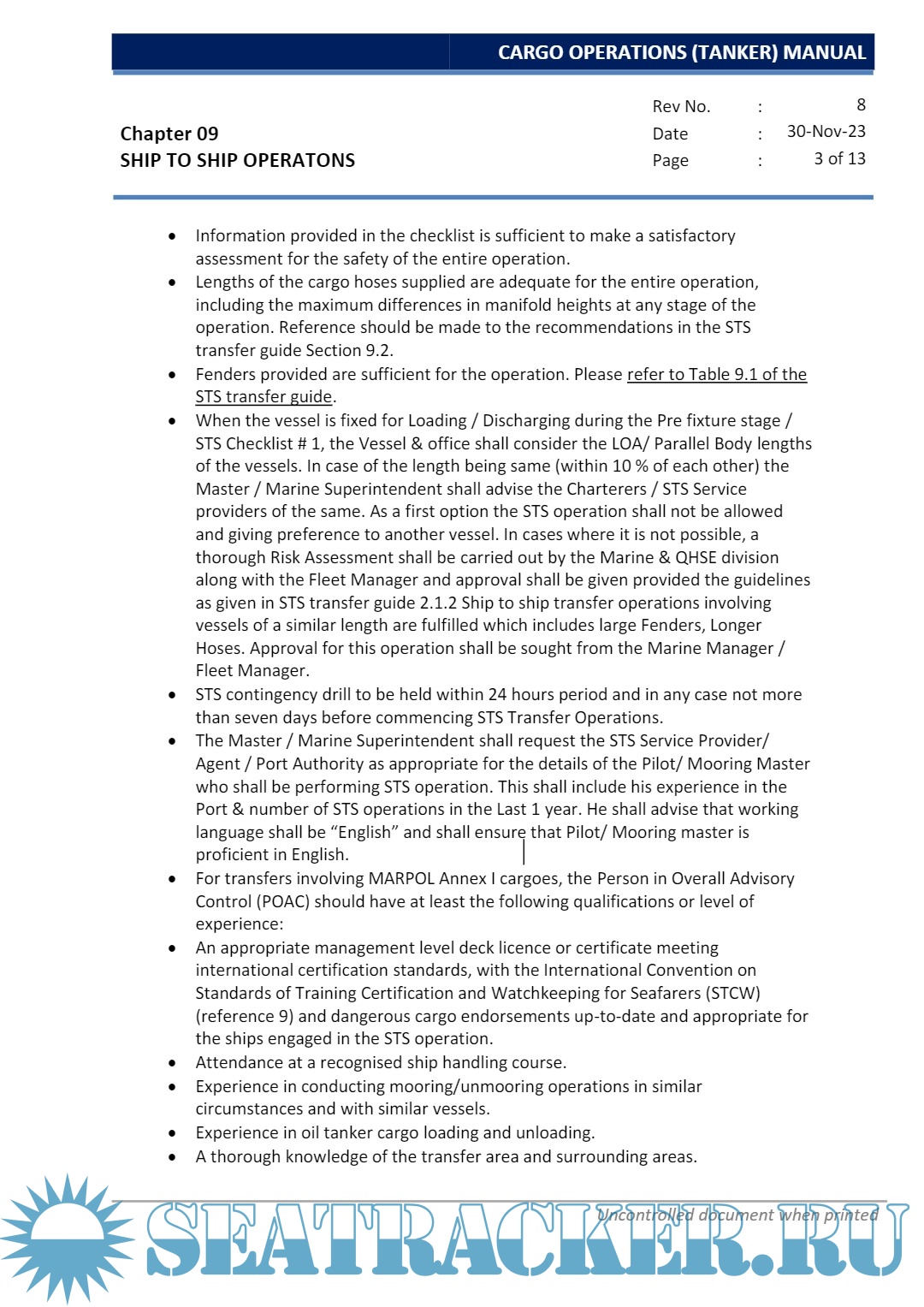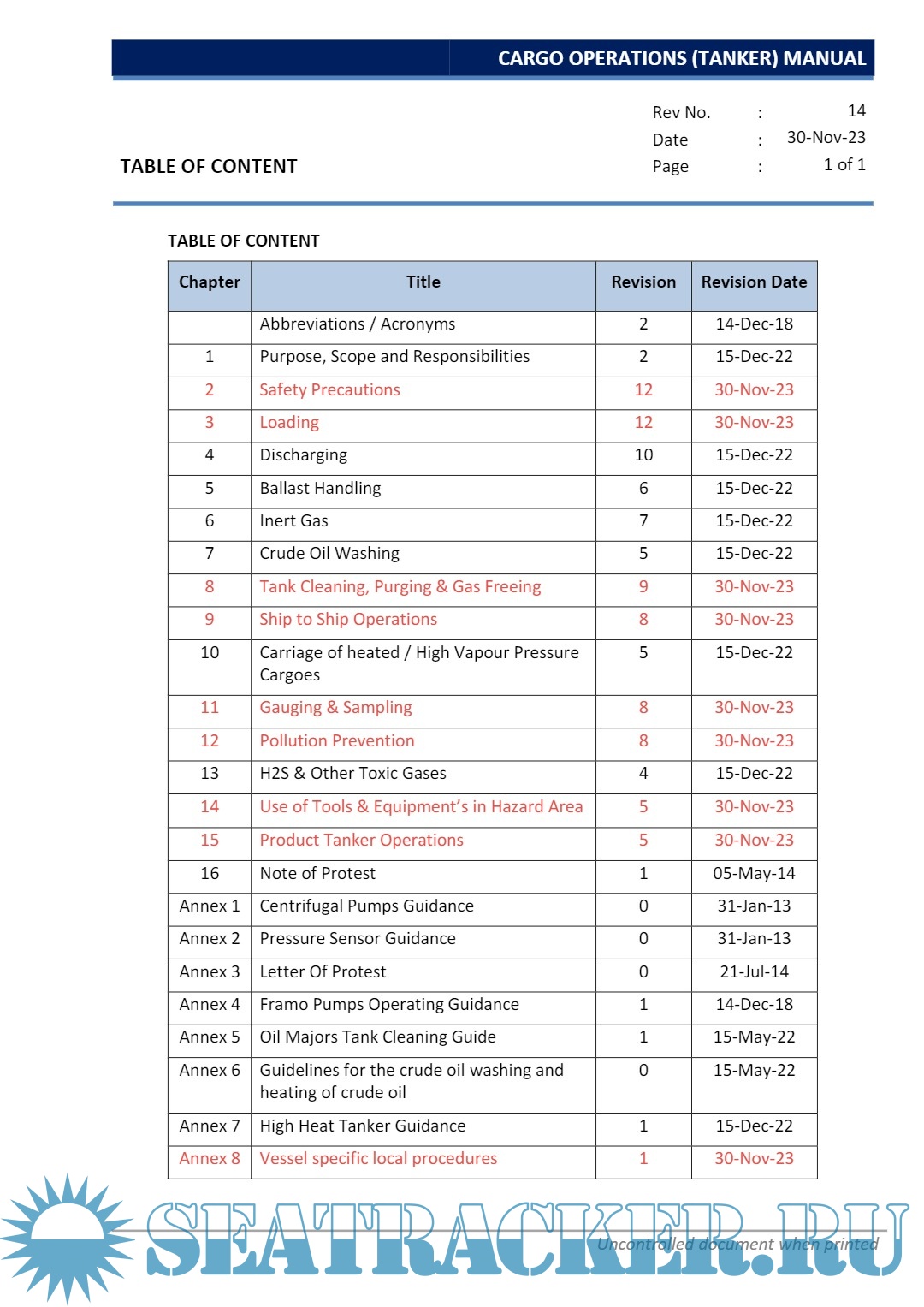 Description: The purpose of this manual is to guide the Master, Officers and crew to load, carry and unload cargoes in a safe and efficient manner. At every stage of the operation of the vessel due consideration must be given to all the rules and regulations of the Classification society, IMO, OCIMF, SOLAS and MARPOL requirements as well as must