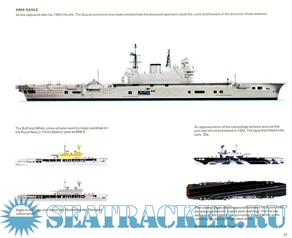 Year: 1972 Language: English Author: David Brown Genre: History Publisher: Imprint unknown Edition: Squadron Histories Format: PDF Quality: Scanned pages Pages count: 86 Description: HMS Eagle was an Audacious-class aircraft carrier of the Royal Navy, in service 1951–1972. Until the arrival of the Queen Elizabeth-class aircraft carriers in the 21st century, she and her sister Ark Royal were the two largest Royal Navy aircraft carriers ever built. She was laid down on 24 October 1942 at Harland and Wolff shipyard in Belfast as one of four ships of the Audacious class. These were laid down during World War II as part of the British naval buildup during that conflict. Two were cancelled at the end of hostilities, and the remaining two were suspended. Originally designated Audacious, she was renamed as Eagle (the fifteenth Royal Navy ship to receive this name), taking the name of the cancelled third ship of the class on 21 January 1946. She was finally launched by Princess Elizabeth on 19 March 1946