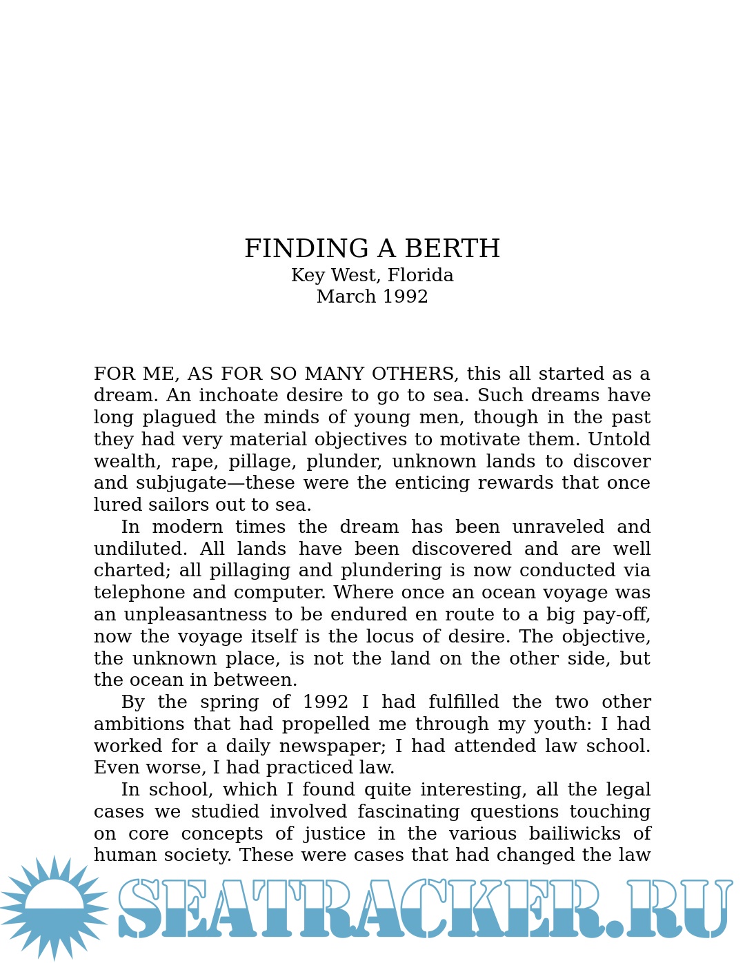 Description: Charlie Doane is among the most infectious prose-poets of today's marine literature. For more than twenty years his keen eye, trenchant wit, and off-center perspective have been delighting us in a voice that could never be confused for any other. In The Sea Is Not Full Charlie takes us to sea on several memorable voyages―some bound for the bottom, some for the heart of darkness, and some for the ages. Populated by an entertaining cast of wharf-rats, hucksters, even a real-deal guru or two, his stories are page-turners that'll surely stir the wanderlust in you.