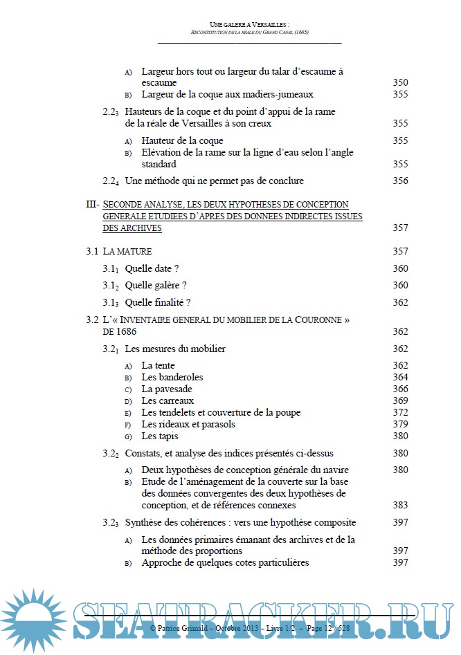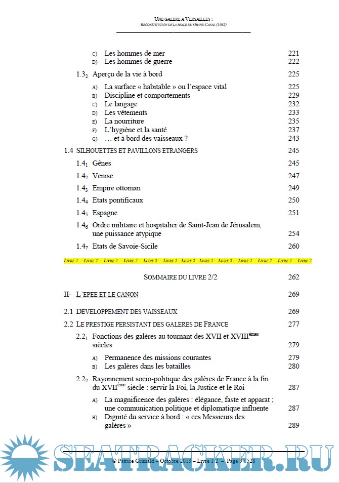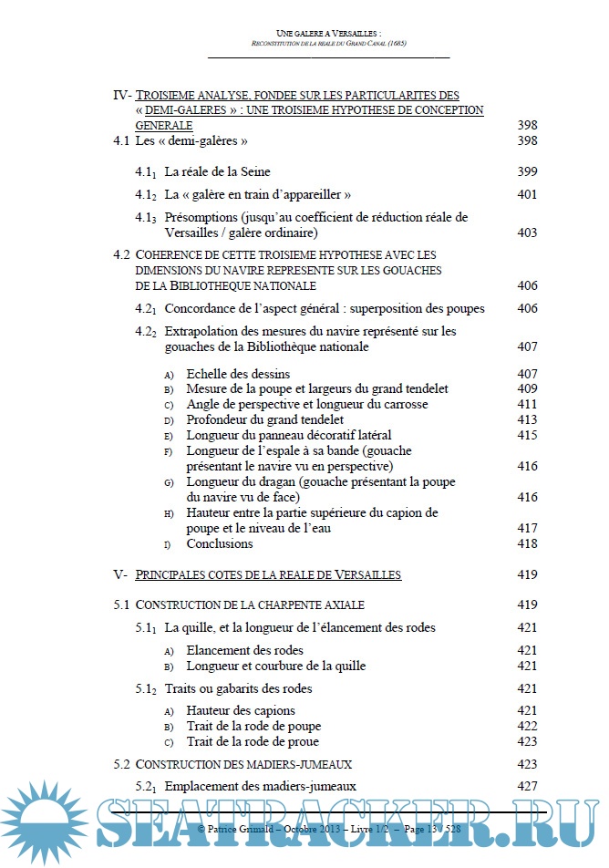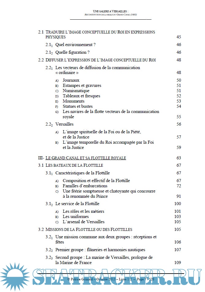 Description: Versailles au Grand Siècle était le foyer d'où rayonnait la gloire du Roi-Soleil. Toutes les institutions du Royaume, tout comme les Arts, les Sciences et les Lettres y jouaient un rôle en décor de fond des trois grandes scènes où se produisait la majesté royale : le château, les jardins et le Grand Canal. La Marine y participait, conformément à la politique de développement élaborée par Colbert. Le Grand Canal fut alors une annexe des arsenaux, un site d'exposition navale, où, à côté de bateaux dédiés aux loisirs nautiques appréciés par la Cour, des innovations, des prototypes et des bâtiments de combat furent présentés au Roi et concoururent à l'image de sa puissance. Au-dessus de cette flottille de Versailles régnait un bâtiment d'exception, superbe héritier de vingt cinq siècles d'histoire maritime des peuples de la Méditerranée : la galère réale du Grand Canal construite en 1685. A l'époque, la galère - parvenue à son apogée conceptuelle et technique - constituait toujours le navire emblématique de la domination navale du Roi. Bien que surclassée dans les batailles par l'artillerie des vaisseaux, elle conservait un prestige exceptionnel qui tenait notamment à sa magnificence et à son influence dans la communication politique et diplomatique de Louis XIV. Servir sur les galères, tant pour les officiers que pour les sous-officiers, les marins ou les soldats, conférait une haute dignité, très recherchée, sous l'égide de la Foi, de la Justice, de la grandeur et de la puissance du Roi. Une galère à Versailles, une réale, bien sûr, était ainsi dans l'ordre des choses. Elle y fut construite en 1685. Sa renaissance se situerait aujourd'hui dans la logique des restaurations menées depuis plus d'un siècle dans le château et son Domaine pour en retrouver l'apparence et l'atmosphère. Il n'en reste que deux panneaux décoratifs latéraux, et quelques rares informations d'archives. Rien qui renseigne directement sur les cotes de ce navire d'exception. Il a donc été nécessaire de reconstituer d'abord les méthodes de conception et de construction des galères. Il fallut ensuite adapter les résultats obtenus, parfois incompatibles entre eux, à la fonction du bâtiment, afin de parvenir à ressusciter son architecture générale dans laquelle convergent en cohérence toutes les sources et analyses historiques sur ce sujet.