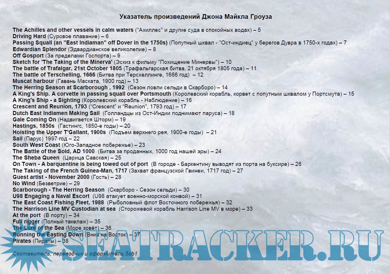 Описание: Очарование моря и эпопеи о людях, которые творили его историю, - все это воплощено в морских картинах Джона Гроувза.