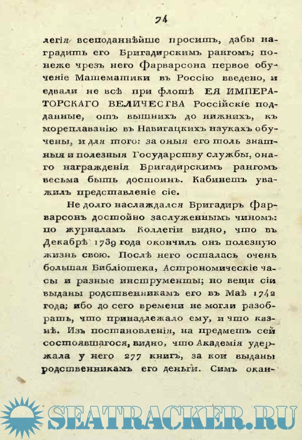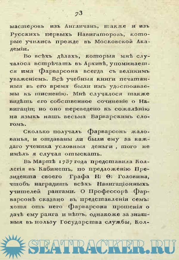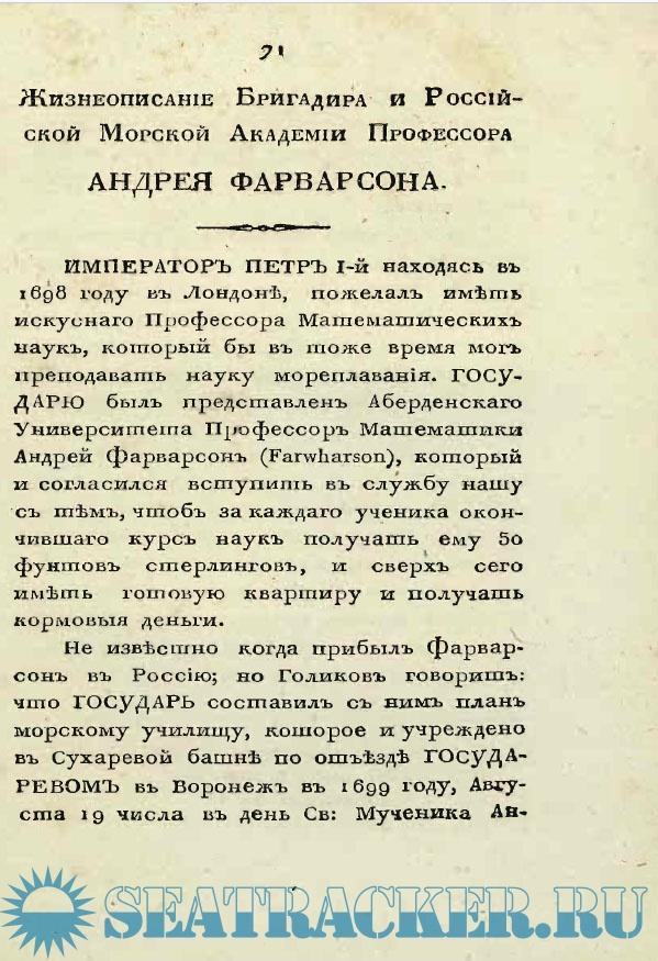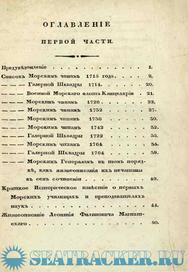 Описание: Жизнеописания: Л. Ф. Магнитского, Г. Г. Скорнякова, А. Фарварсона, П. Михайлова, Ф. М. Апраксина, К. И. Крюйса, Ю. С. Лима, Б. Е. Делазиера. И. Ф. Боциса, С. Трезеля, Паддона, Фан-Гофша, И. А. Сенявина, А. Д. Меньшикова, Госселера, Т. Сандерса, И. И. Сиверса, лорда Дуффуса, Вильстера.