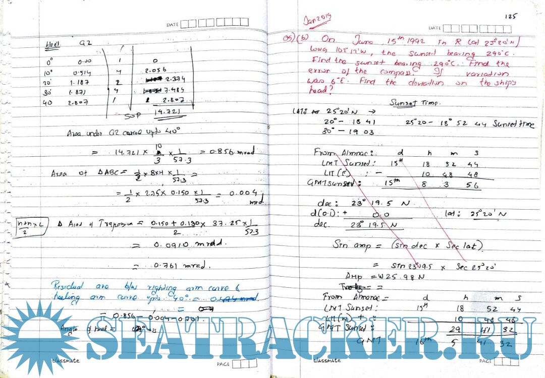 Solved Numericals (Handwritten Notes) (2011-2019) from Past Question Papers of Mercantile Marine Department (MMD), India Examinations for Phase I (NCV).
