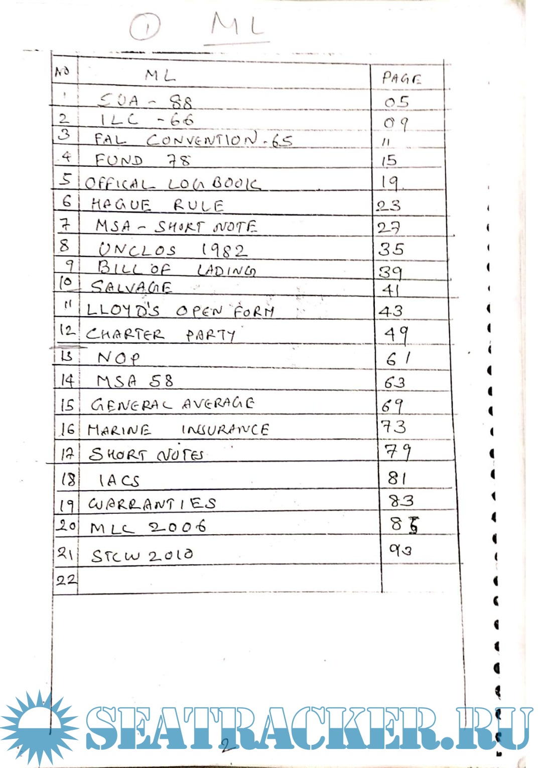 Maritime Law - Notes for Mercantile Marine Department (MMD), India Examinations for NCV (F.G.) Phase II