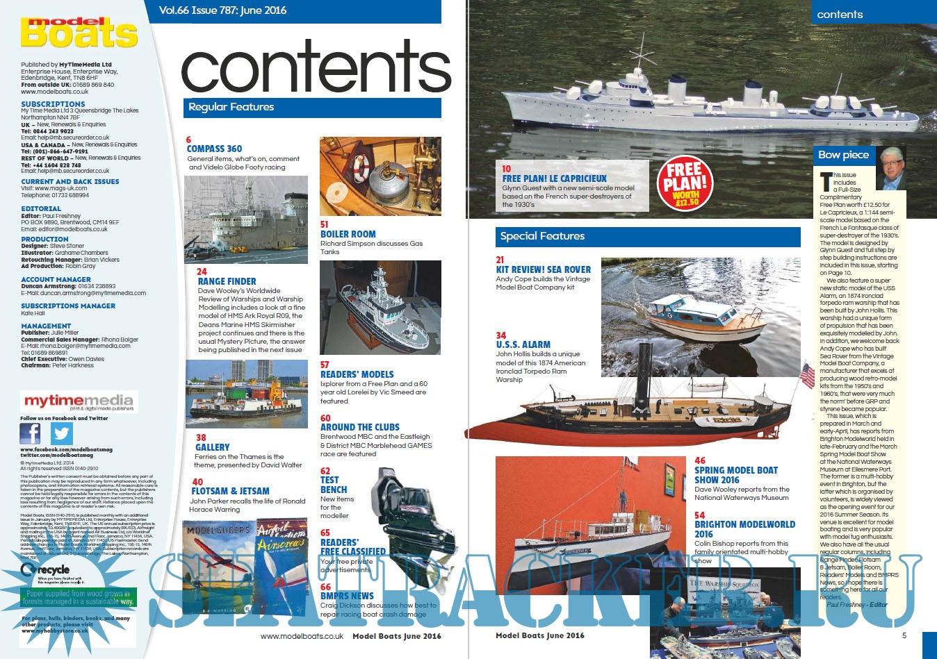Description: Model Boats magazine is a practical and informative read for those with a love for the hobby. It covers the latest news and views from the various clubs and associations around the country, useful hints, tips and step by step guides for those interested in the art of constructing a model boat as well as tests and recommendations of new boats and tools. Floating along behind these are great special features examining in depth different models from narrowboat to destroyer!