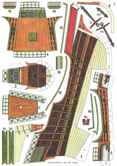 Описание: 15 листов цветных выкроек и инструкций для изготовления бумажной модели флагманского парусного корабля Колумба ''Santa Maria'' 1492 год в масштабе 1:100