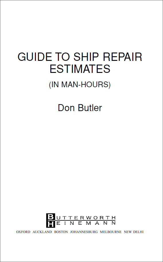 However, common ground has been assumed in the output of workers in standard jobs.It is stressed that this book considers only ship ‘repairs’, that is, removing damaged, worn, or corroded items, making or supplying new parts to the pattern of the old and installing. It is not meant to be used in its entirety for new building work, although, in some areas, it may prove useful.