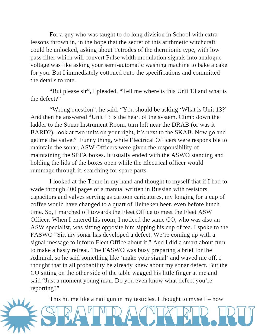 Year: 2020 Language: English Author: ANIL GONSALVES Genre: Fiction Format: PDF Quality: eBook Pages count: 136 Description: This book is a collection of fictional anecdotes referring to my time spent at the National Defence Academy, the Indian Navy and post retirement from the Navy. The anecdotes are not contiguous. Therefore, they can be read in any order. I've used hyperbole extensively to accentuate humour. The characters and events in this book are fictional and are purely figments of my own imagination. Additional info: About the author: Captain Anil Gonsalves studied in St Francis D’Sales School,Nagpur and St Vincent’s School Pune, India. He joined the 54th Course at the National Defence Academy, Khadakvasla, Pune, India and passed out from the hallowed portals of this Institution in June 1978. He served on various Indian Naval Ships ranging from Landing Craft Utility, Landing Ship Tank, Missile boats, ASW Patrol Vessels and ASW Frigates and completed his Staff College Course in 1994. He commanded CGS Rajshree and INS Mahish. He specialised in Anti-Submarine Warfare and was Instructor and Chief Instructor of ASW School, Kochi. He also served as Fleet Anti-Submarine Warfare Officer, Eastern Fleet and Staff Officer ASW at Maritime Warfare Centre in Mumbai, before leaving Service in 2005.