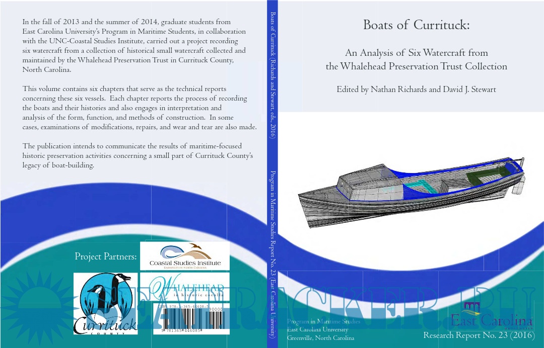 Description: In the fall of 2013 and the summer of 2014, graduate students from East Carolina University's Program in Maritime Students, in collaboration with the UNC-Coastal Studies Institute, carried out a project recording six watercraft from a collection of historical small watercraft collected and maintained by the Whalehead Preservation Trust in Currituck County, North Carolina. This volume contains six chapters that serve as the technical reports concerning these six vessels. Each chapter reports the process of recording the boats and their histories and also engages in interpretation and analysis of the form, function, and methods of construction. This publication intends to communicate the results of maritime-focused historic preservation activities concerning a small part of Currituck County's legacy of boat-building