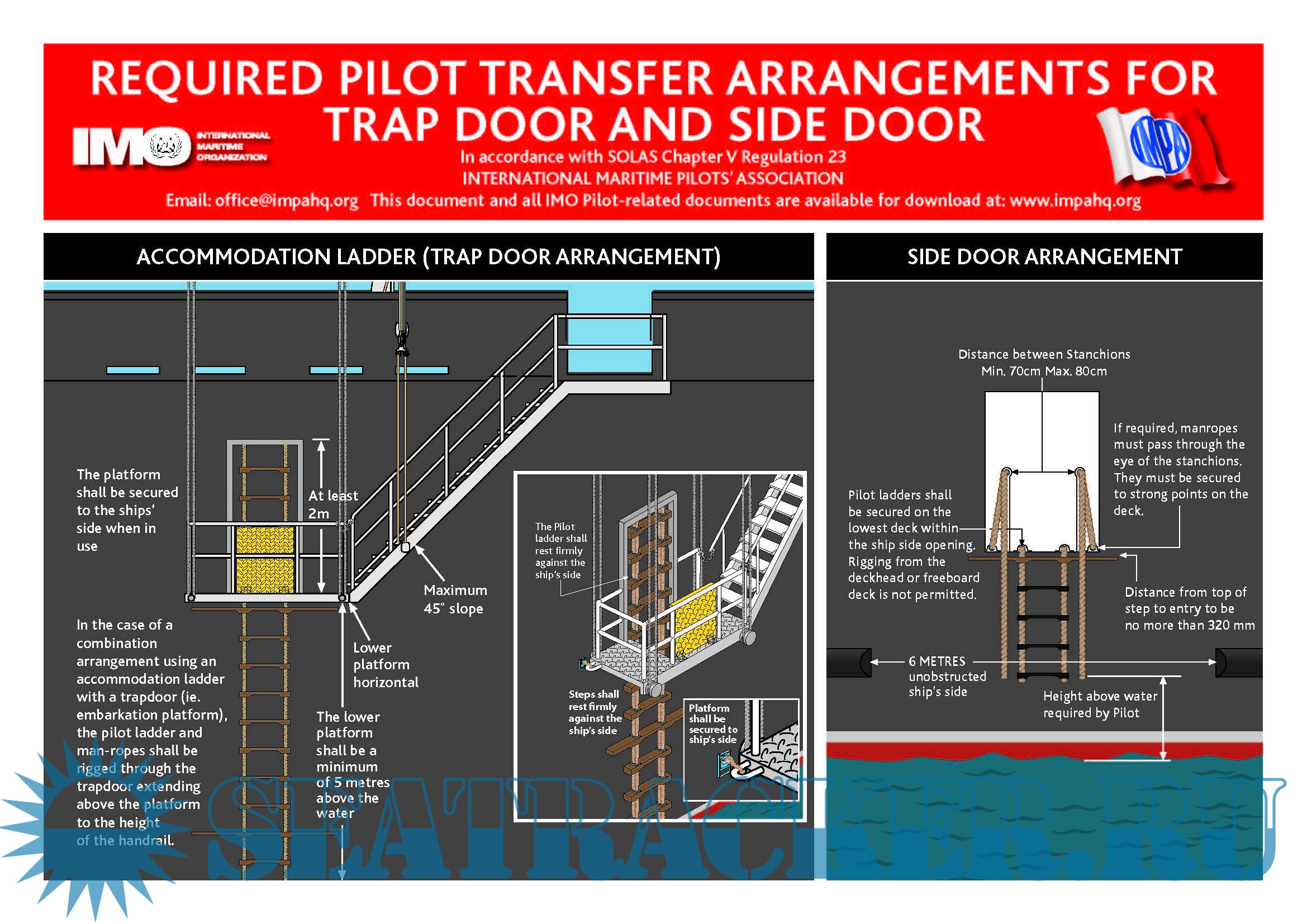 Description: The new & updated poster, containing the 'Required Pilot Transfer Arrangements', has been finalised by pilotage experts. It is currently awaiting approval from the IMO, expected this year, 2024. The same for new poster "Required Pilot Transfer Arrangements for Trap Door and Side Door Poster", awaiting approval from the IMO. Regrettably, these non-compliant practices are still widespread, resulting in the loss of lives among maritime pilot, poster attached.