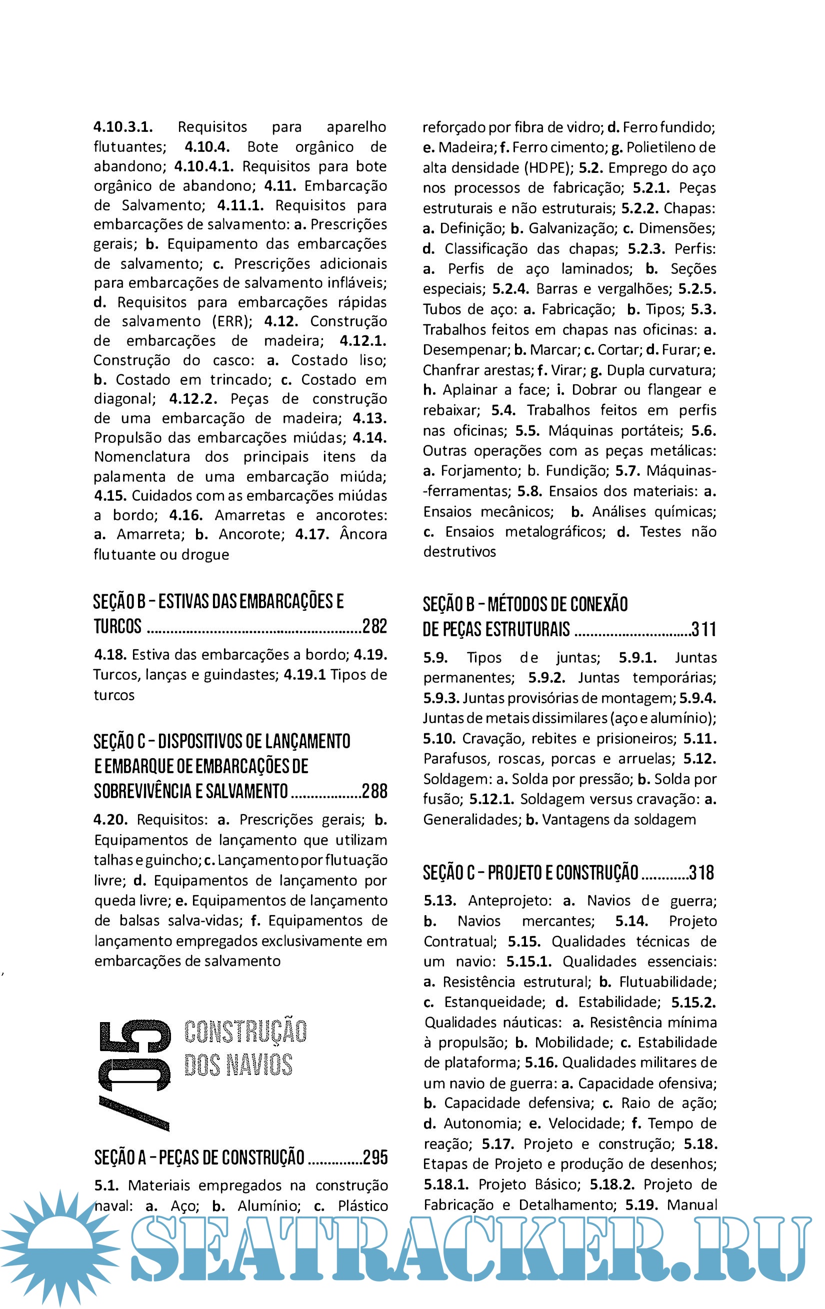 Year: 2019 Language: Portuguese Author: Maurílio M. Fonseca Genre: Textbook Format: PDF Quality: eBook Pages count: 652 Description: O livro Arte Naval conta com uma nova edição, totalmente reformulada, revisada e atualizada, atendendo às mudanças e avanços tecnológicos que o tempo impôs. O volume 1 apresenta definições minuciosas sobre os componentes e estruturas de um navio, tipos de embarcações, materiais e técnicas de construção naval; o volume 2 é dedicado aos instrumentos e sistemas de marinharia; técnicas de manobra de navio, procedimentos para transporte de cargas; convenções, leis e regulamentos ligados à atividade marítima; além de questões importantes quanto à sobrevivência no mar e à segurança da navegação.