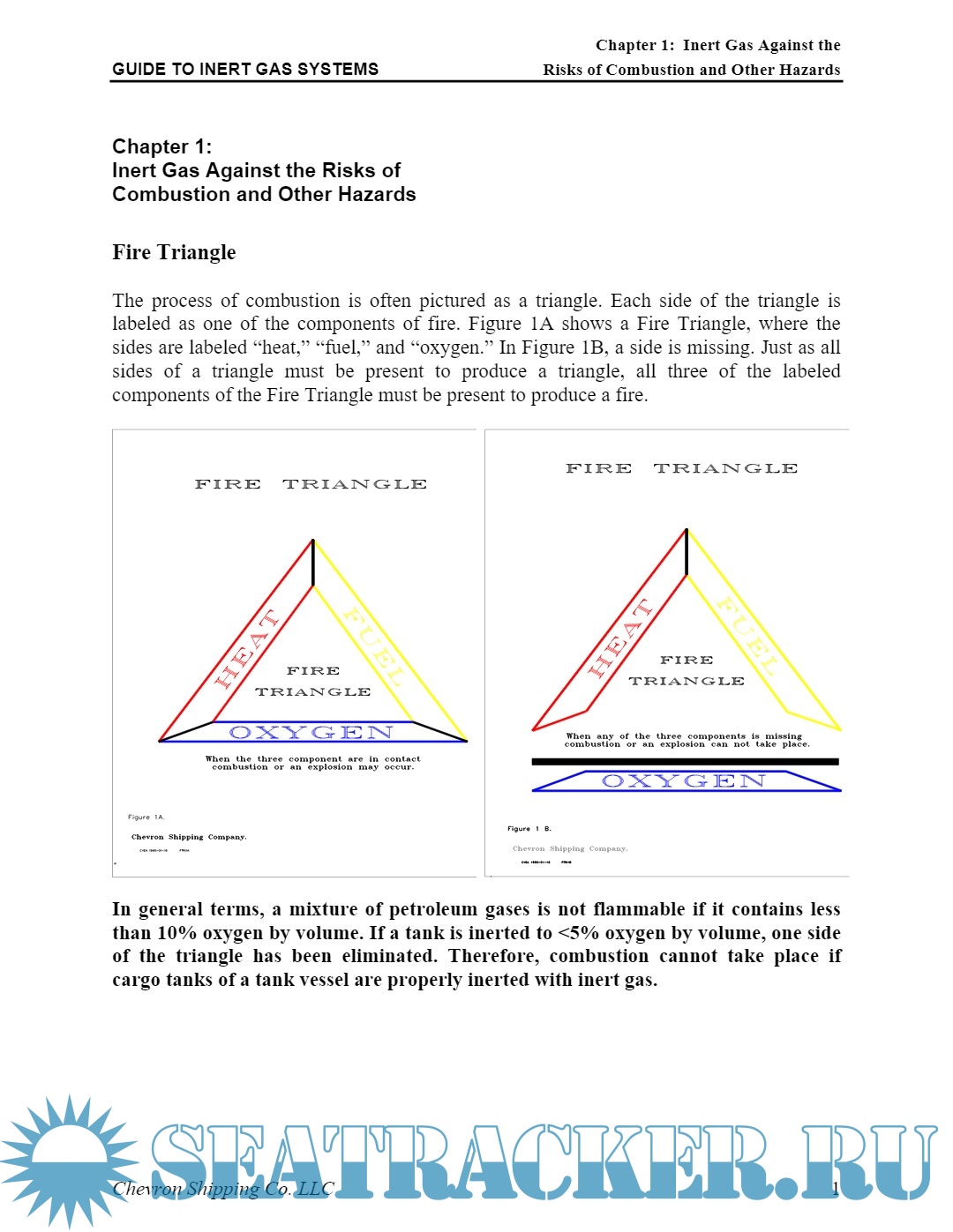 Year: 1996 Language: English Author: Chevron Shipping Company LLC Format: PDF Quality: eBook Pages count: 63 Description: This manual contains background information for operation and maintenance of inert gas systems (IGS). These systems are designed to keep cargo tanks at safe levels of flammability. Additional information on equipment associated with the IGS is available in: • Chevron Shipping’s Cargo Vapor Control manual • Vessel construction plans • Vendor drawings • Printed instruction books on board each vessel and in the home office • Inert Gas Systems by International Maritime Organization • SOLAS (Safety of Life at Sea) by International Maritime Organization • International Safety Guide for Tankers and Terminals (ISGOTT) by The International Chamber of Shipping, Oil Companies International Marine Forum, and International Association of Ports and Harbors Additional info: This Guide to Inert Gas Systems is a Reference Document into the principles and precautions of IGS operation. It is meant to be used as a training aid and a general guide for users of shipboard Inert Gas Systems. Ship specific drawings and IGS manufacturers’ Operating Instructions should always be referred to for exact operation requirements of each vessel’s Inert Gas System.