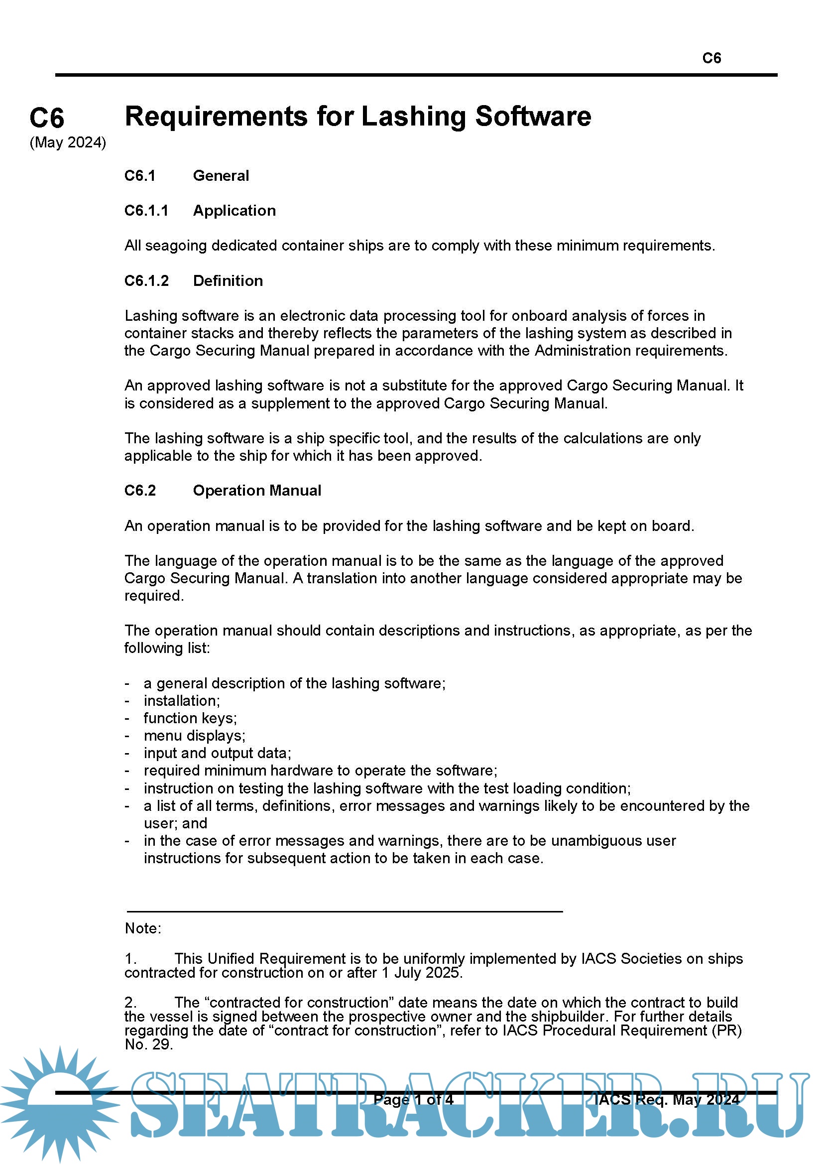 Both UR C6 and C7 will be uniformly implemented by IACS Member Societies on ships contracted for construction on or after 1 July 2025.