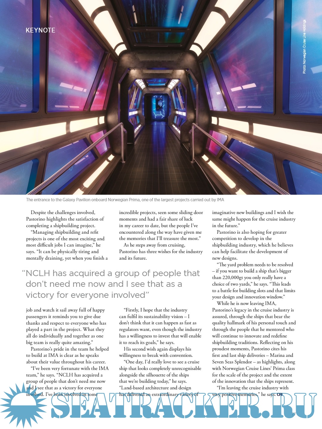 Year: 2024 Language: English Author: Jon Ingleton Genre: Periodical (magazine) Format: PDF Quality: eBook Pages count: 132 Description: This year’s issue of Cruise & Ferry Interiors again profiles people and businesses that routinely deliver great design, such as Marco Pastorini, formerly of Independent Maritime Advisors, who spoke with us for our Keynote piece on page 10, and interior designer Liz Schneider, who conceived the idea for our stellar cover image.