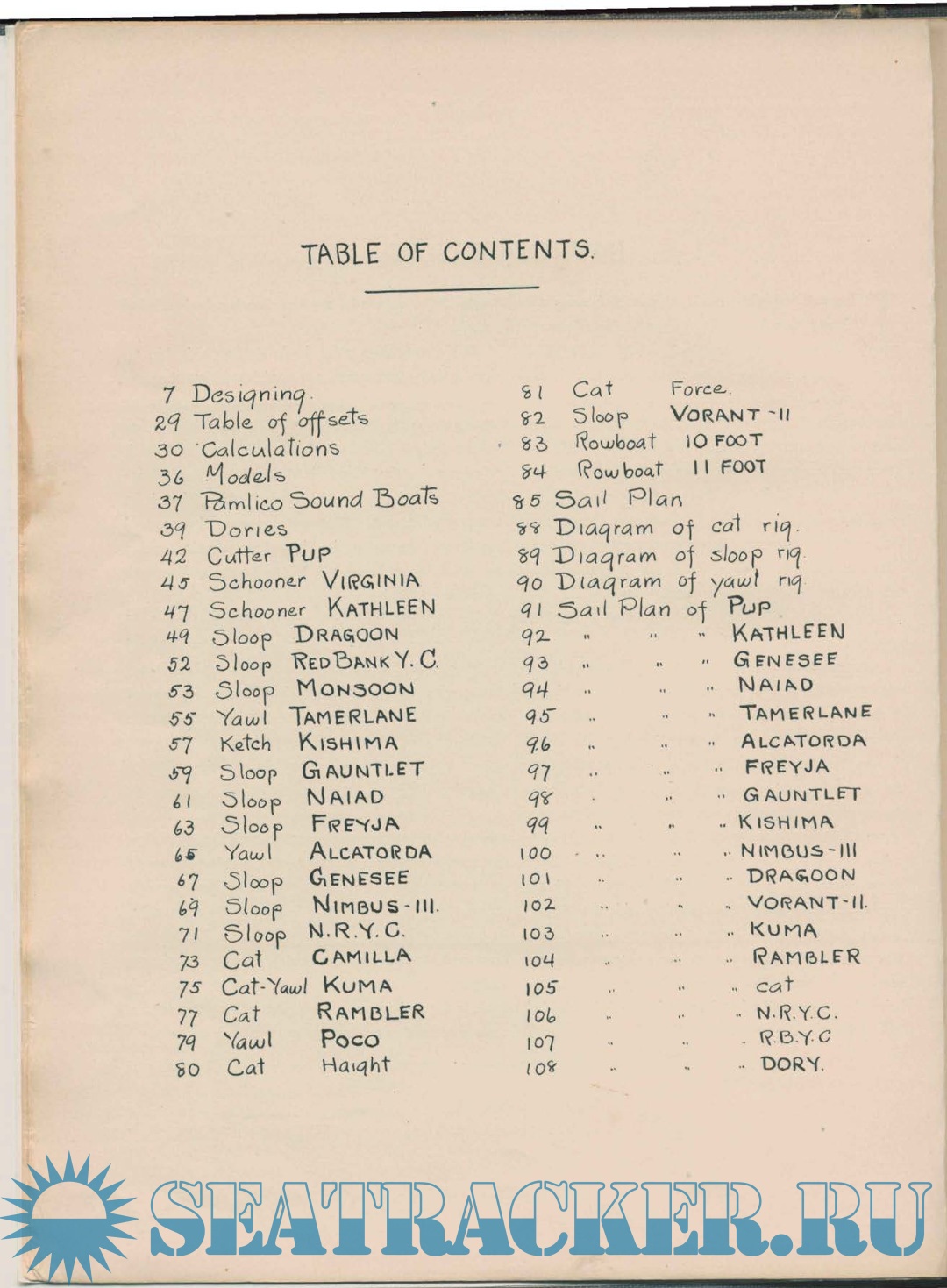 Along with an extensive and useful description of how to actually draw your own set of lines plans, Davis explains how to create a table of offsets, and how to calculate your hull’s displacement and sail area. A good portion of the book is devoted to illustrating his instructional points, with line drawings, sketches, and commentary of 24 beautiful small boats.