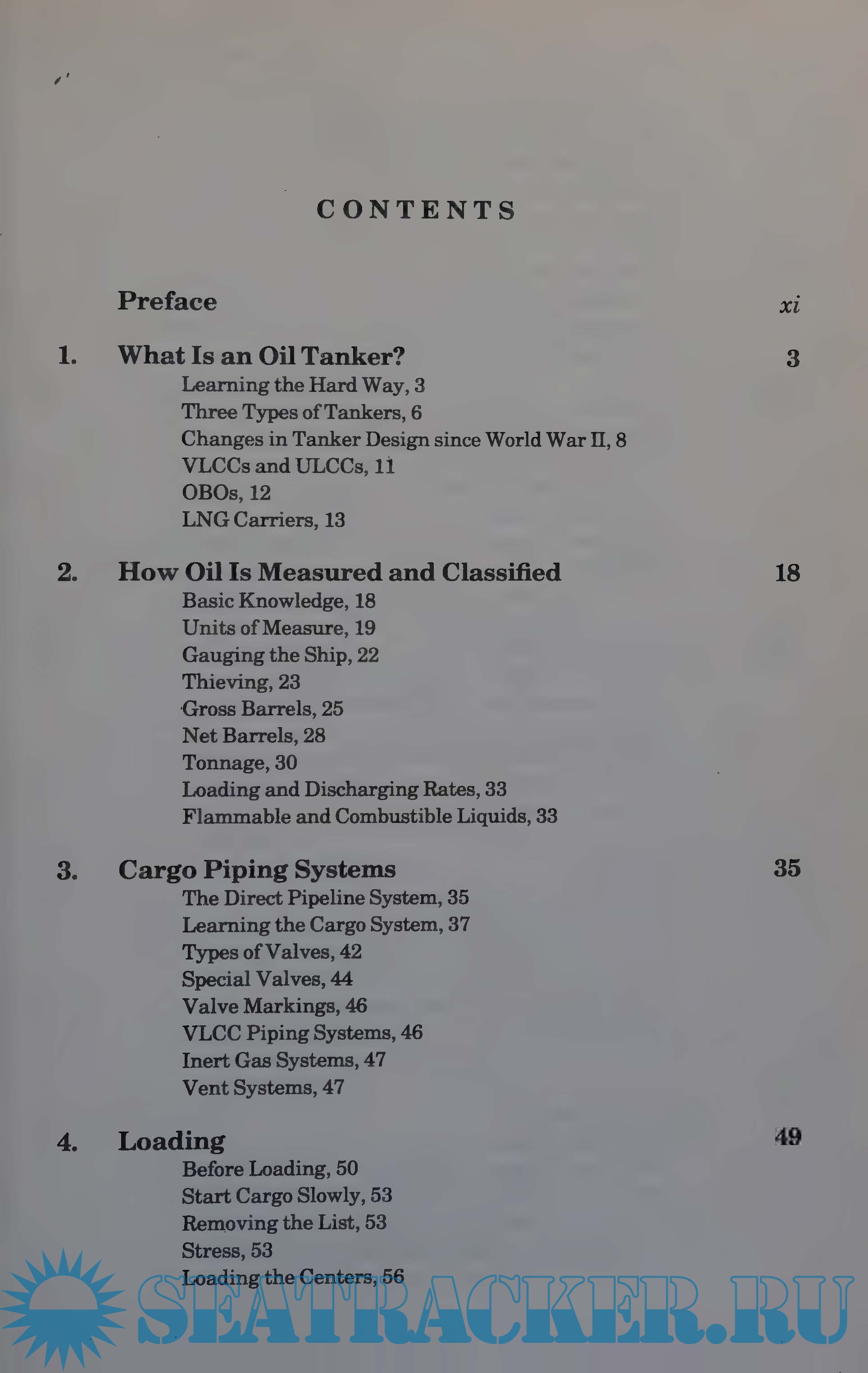 Description: The book contains sections on tanker design and construction, oil measurement, cargo piping systems, loading, discharging, cargo planning, ballasting, tank cleaning, fire fighting, safety procedures, and current oil pollution laws and practices.