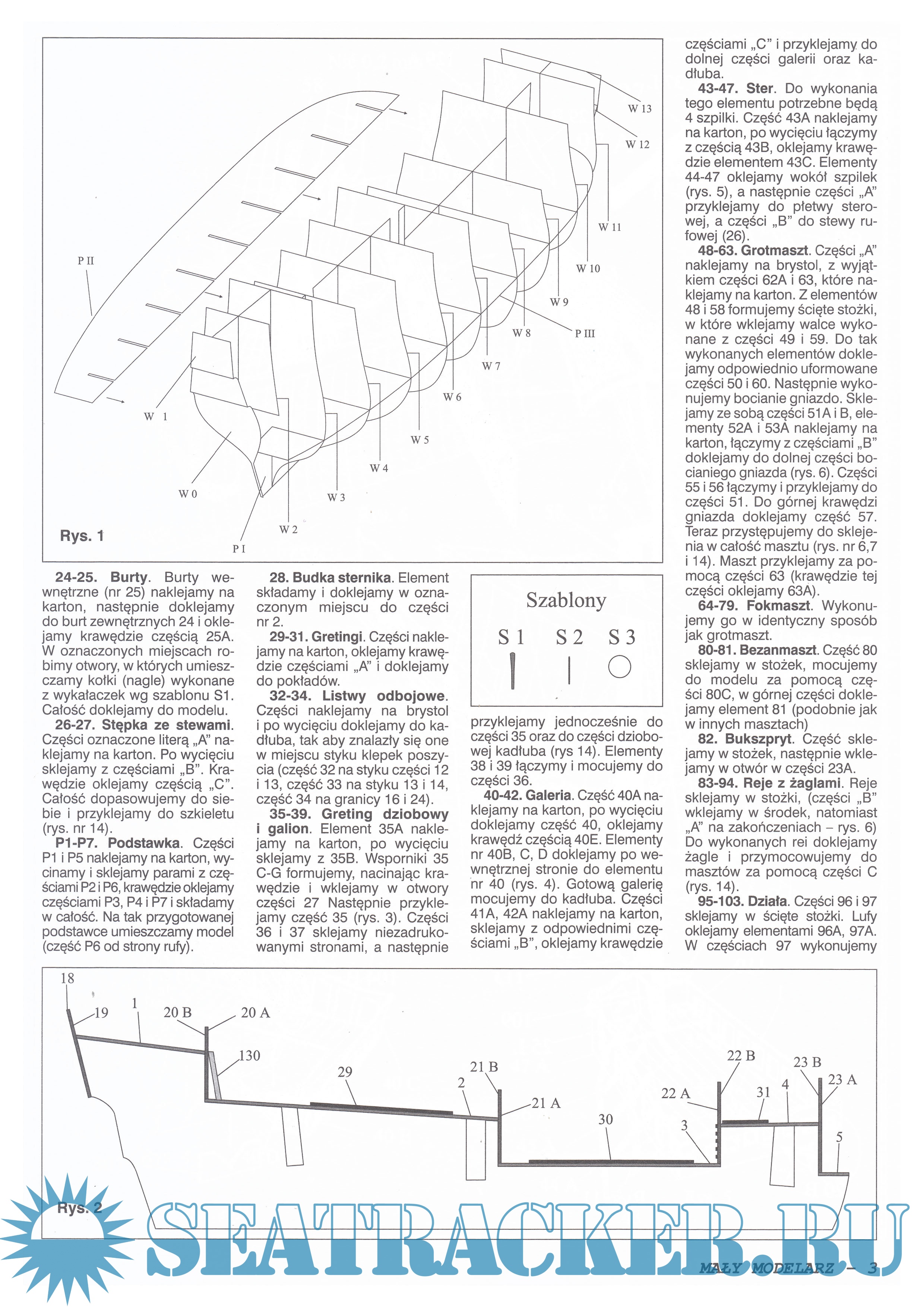Описание: 18 листов цветных выкроек и инструкций для изготовления бумажной модели польского парусного корабля "Wodnik" в масштабе 1:100