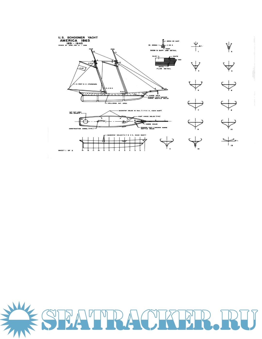 Description: My model of the AMERICA followed the same building procedures as those used in my BLUENOSE model and article. Therefore, I will be referring back to that information at times during my discussion of the America's building. For those of you who have mentioned a desire for a materials list for models described in articles, I have included one along with my bibliography.