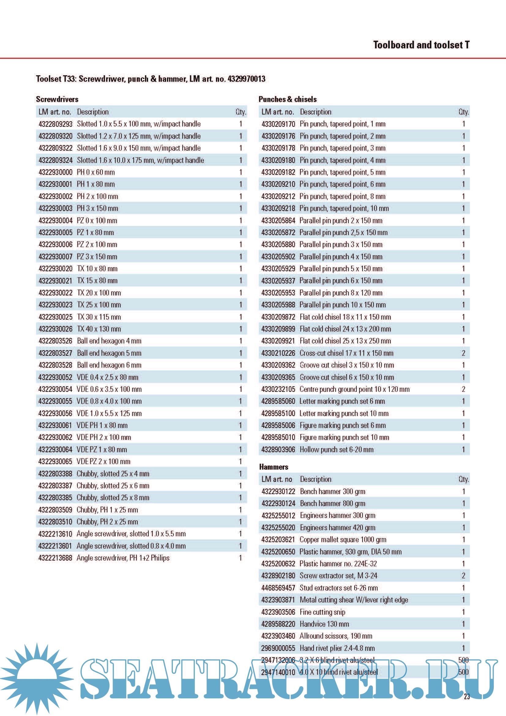 Description: Catalogue with various tools for Workshop