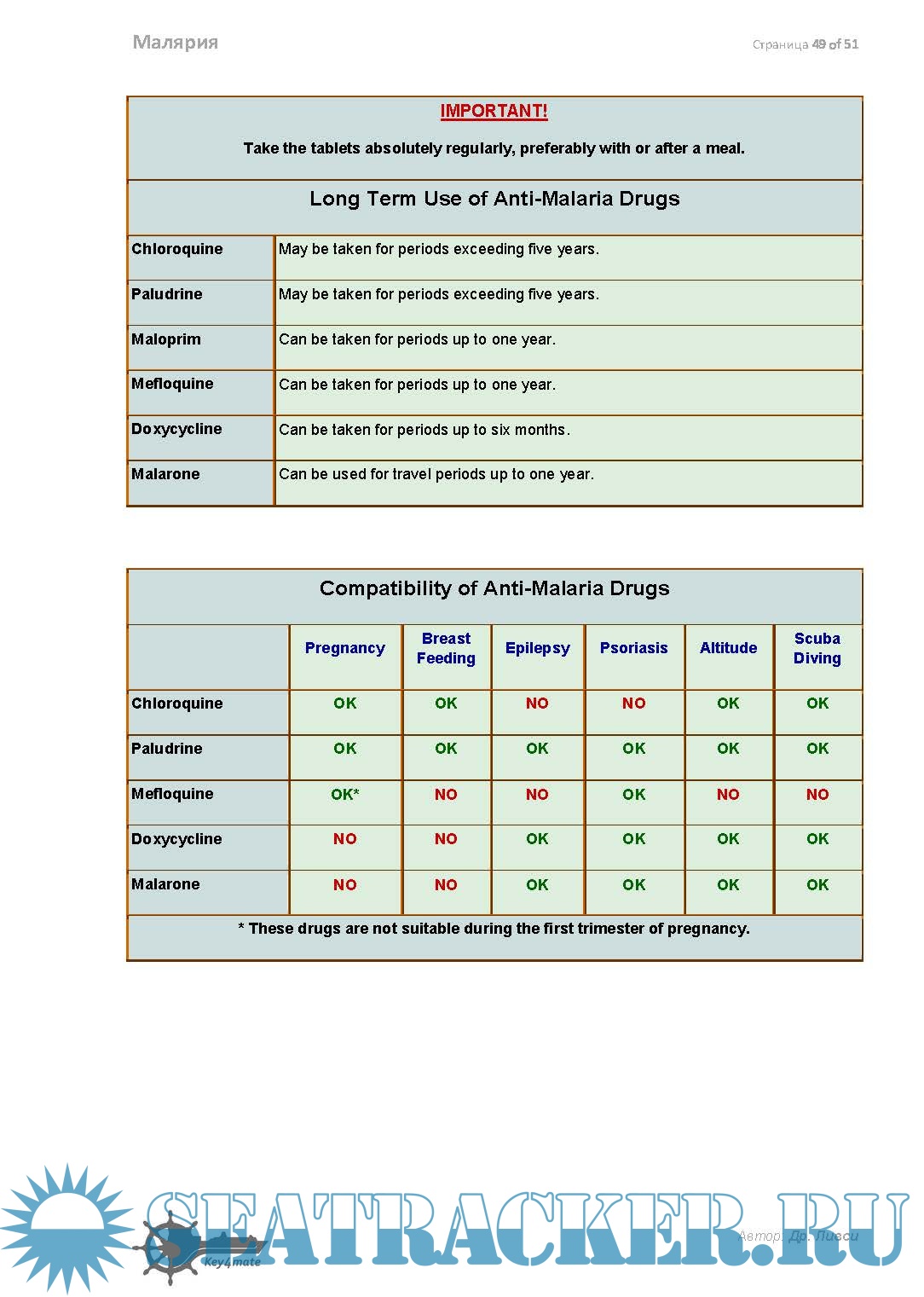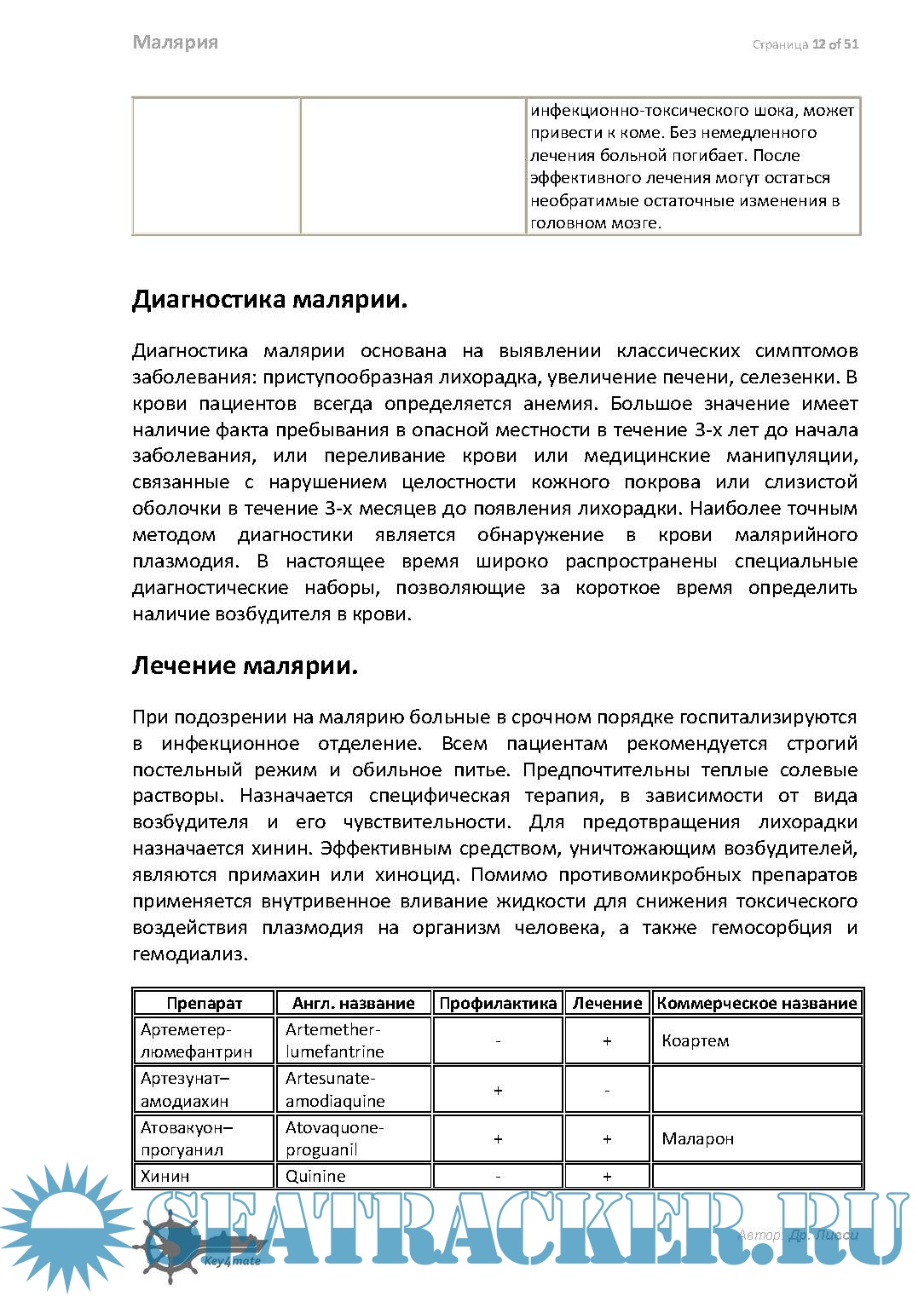 Доп. информация: Крайне полезный гайд для моряков. Владение реальной практической информацией может спасти жизнь заболевшего малярией члена экипажа .
