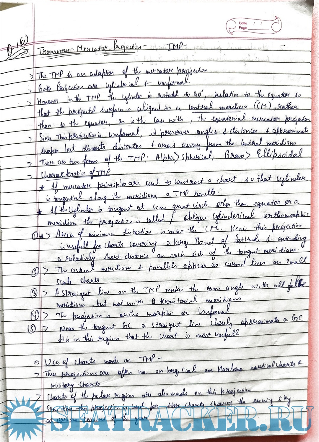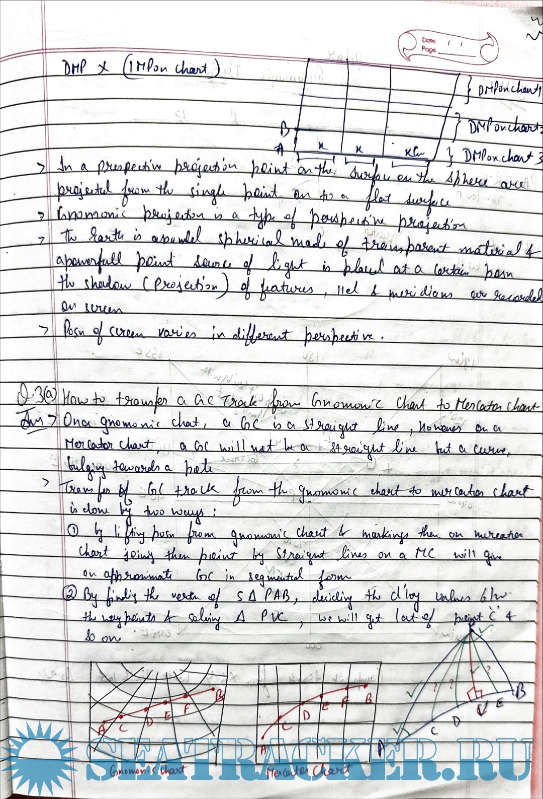 Description: Paper: Terrestrial and Coastal NavigationStream: Phase I (Chief Mate F.G.)Handwritten Notes.Solutions for Capt. R.K. Sood Chart Projection Theory and Numericals for Mercantile Marine Department (MMD), India Examinations.