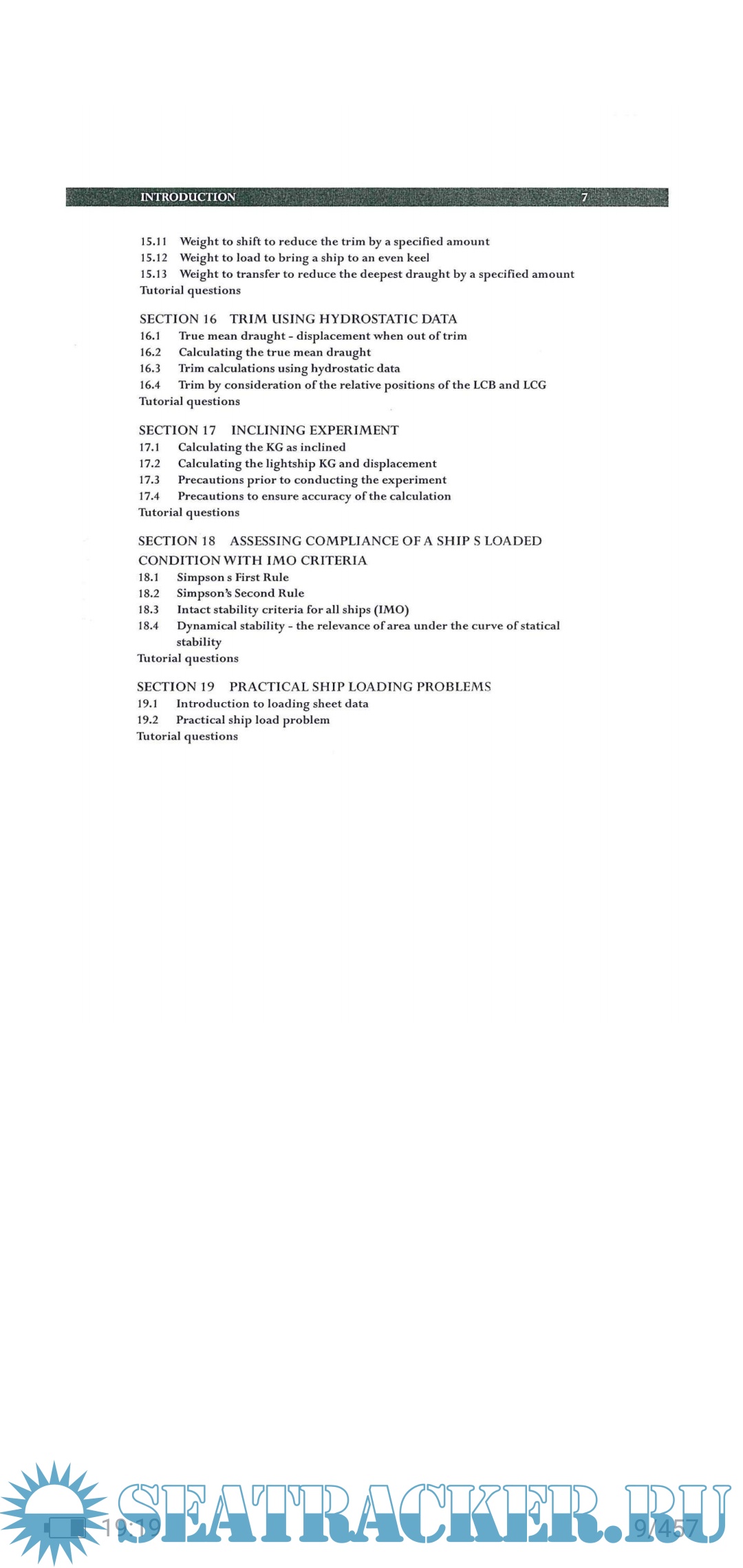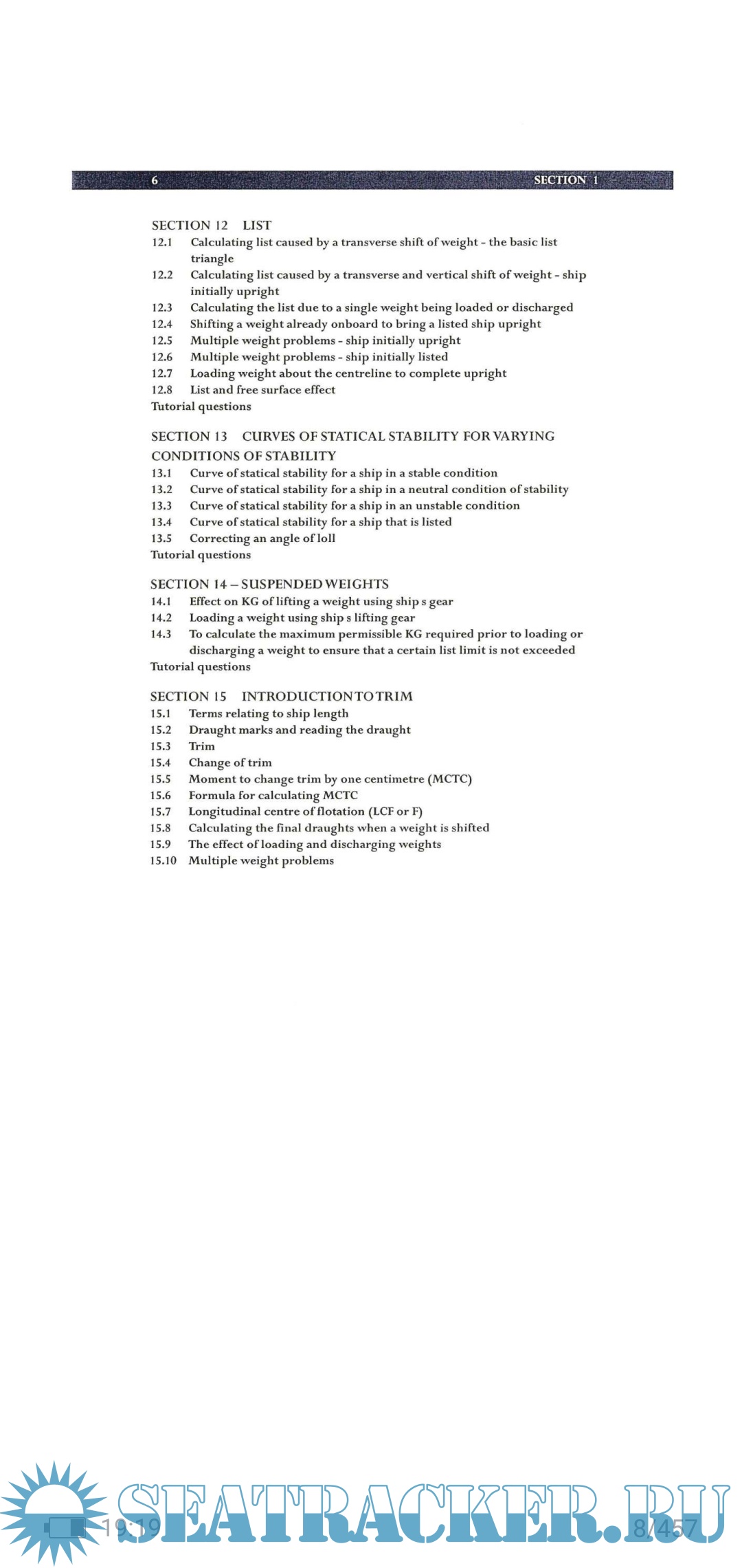 Description: Many students worry that they do not have the mathematical ability for ship stability calculations. This publication addresses this problem by covering the subject in the simplest way possible at a level appropriate for a learner studying either independently or at college. Worked examples and self-assessment questions are provided throughout with tutorial questions at the end of each section. All questions are of a type and standard that are likely to be encountered in real examinations utilising a full set of stability data supplied in the pocket book.
