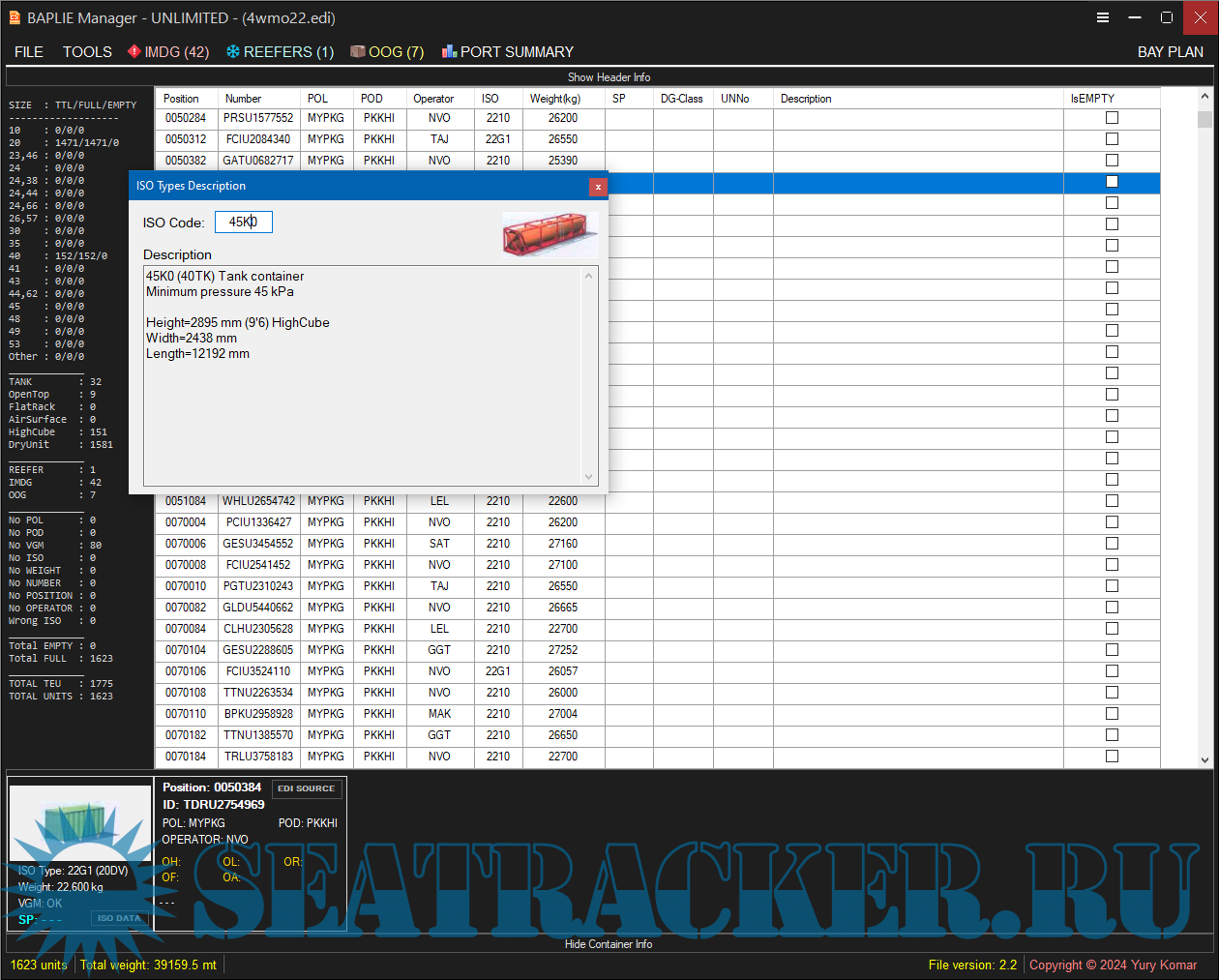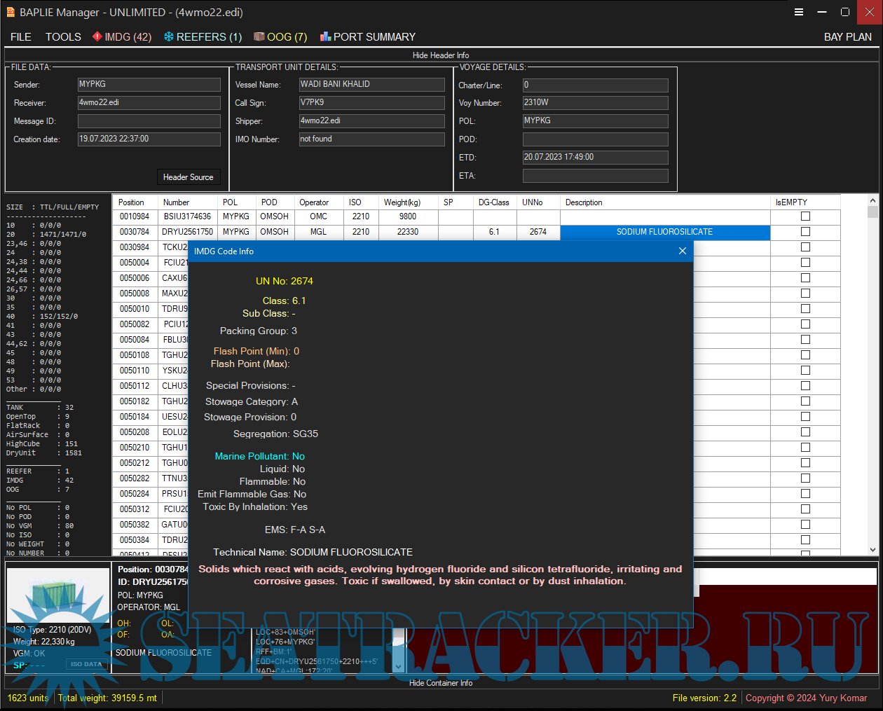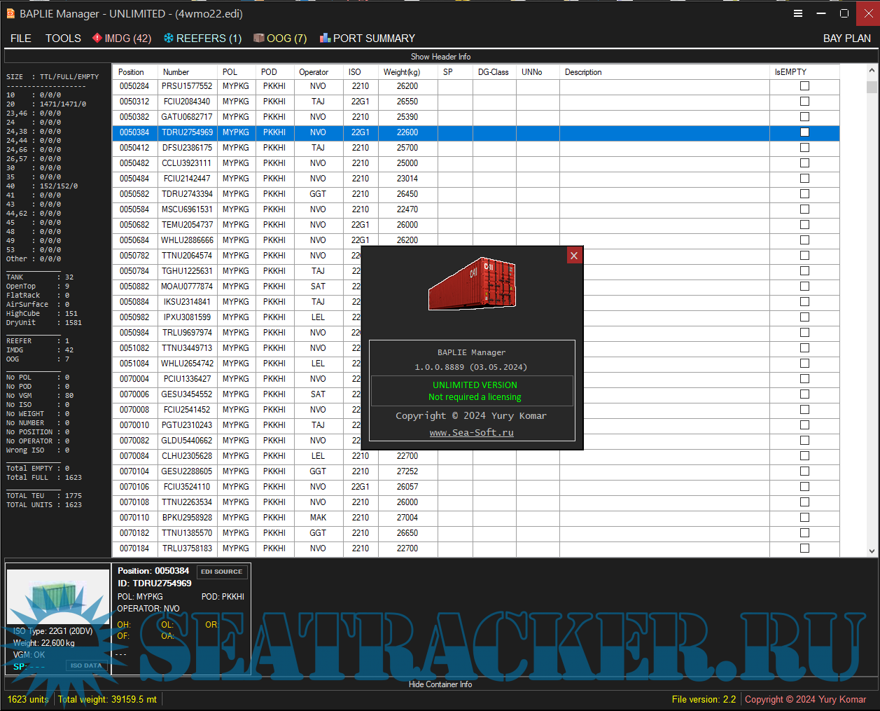 Description: Software for reading and editing BAPLIE files with cargo information for container ships.