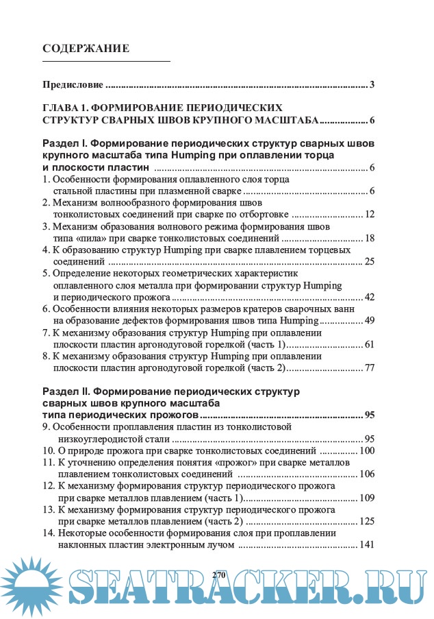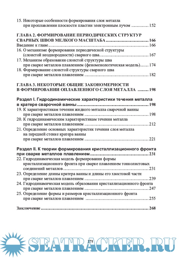 Описание: Монография посвящена проблемам формирования периодических структур сварных швов при сварке металлов плавлением. Рассмотрены особенности формирования периодических структур, механизмы образования периодических структур. К таким структурам относятся периодические структуры мелкого масштаба с шагом периодичности порядка долей миллиметра (типа «чешуйчатости» сварных швов) и периодические структуры крупного масштаба с шагом периодичности от нескольких миллиметров до десятков миллиметров (структуры Humping, образующиеся при сварке торцовых соединений, так называемый «пилообразный» шов, структуры Humping, образующиеся при сварке стыковых соединений, и структуры, формирующие периодические прожоги). Для научных и инженерно-технических работников, занятых в области сварочного производства. Может быть полезно студентам, аспирантам и преподавателям технических учебных заведений.