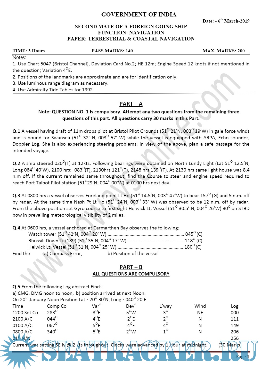 Question Paper Set (May 2024) for Second Mate (F.G.) Mercantile Marine Department (MMD), India Examinations