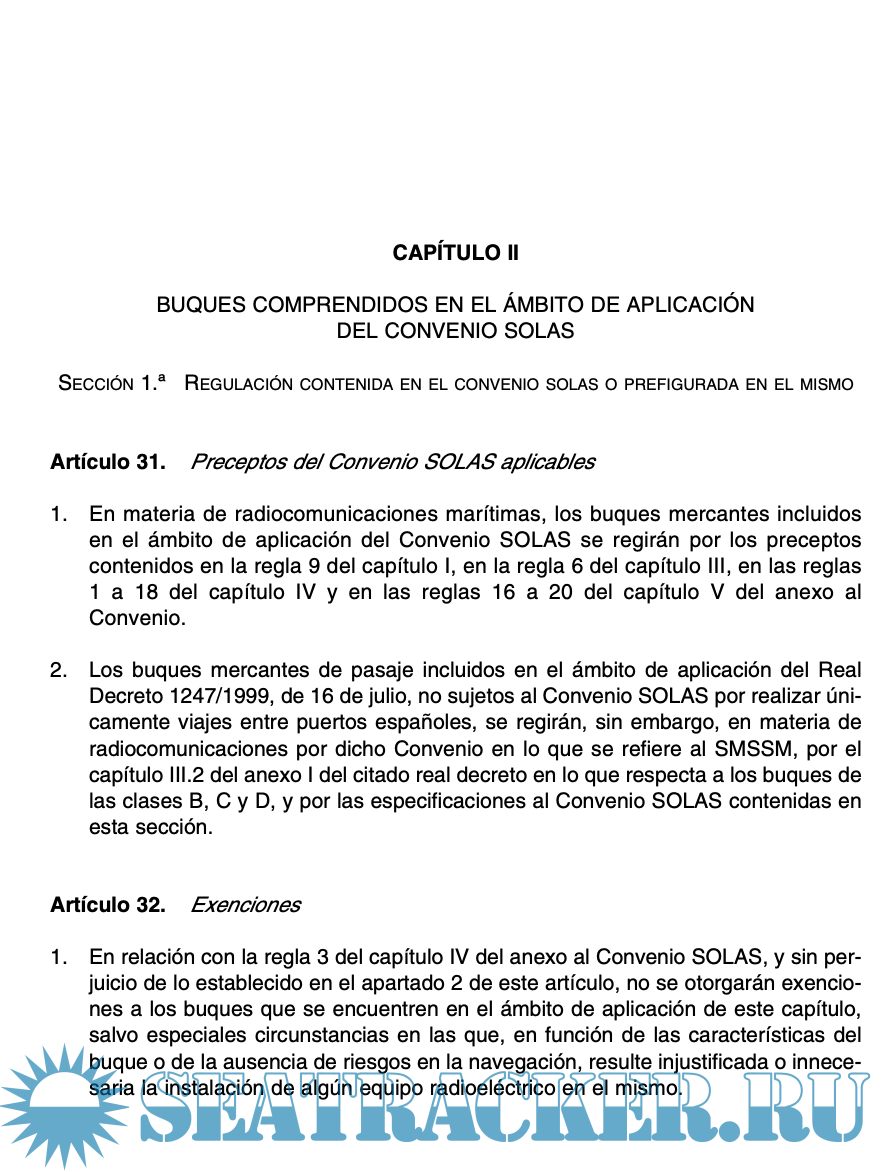 Description: Spanish normative text about radiocomunications in spanish merchant navy