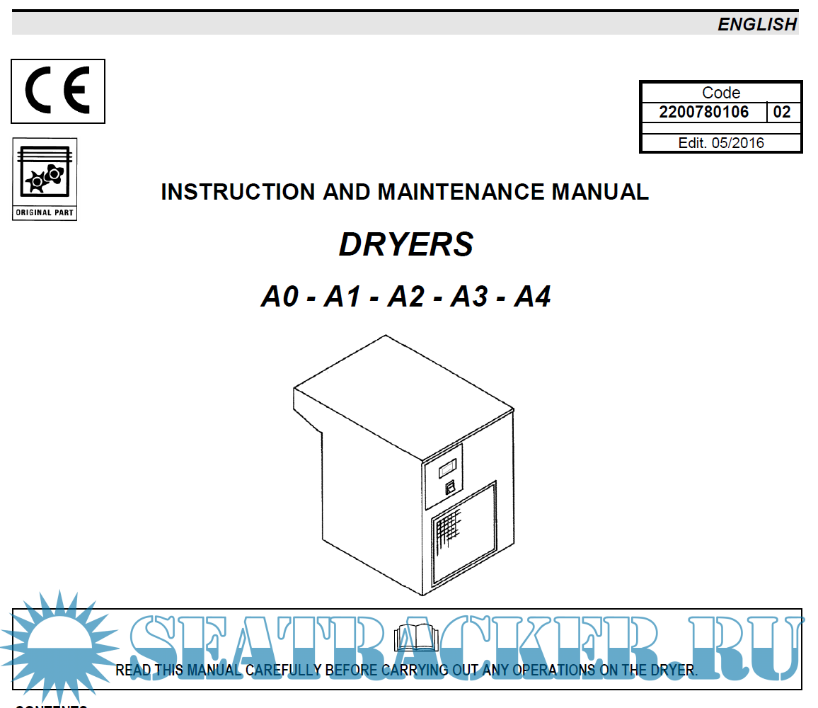 Instruction and maintenance manual for FIAC air dryers A0-A1-A2-A3-A4