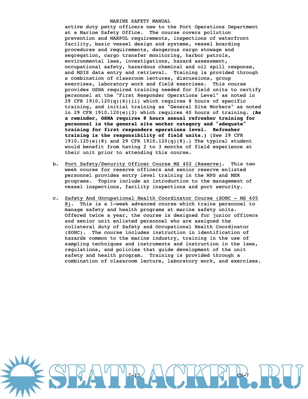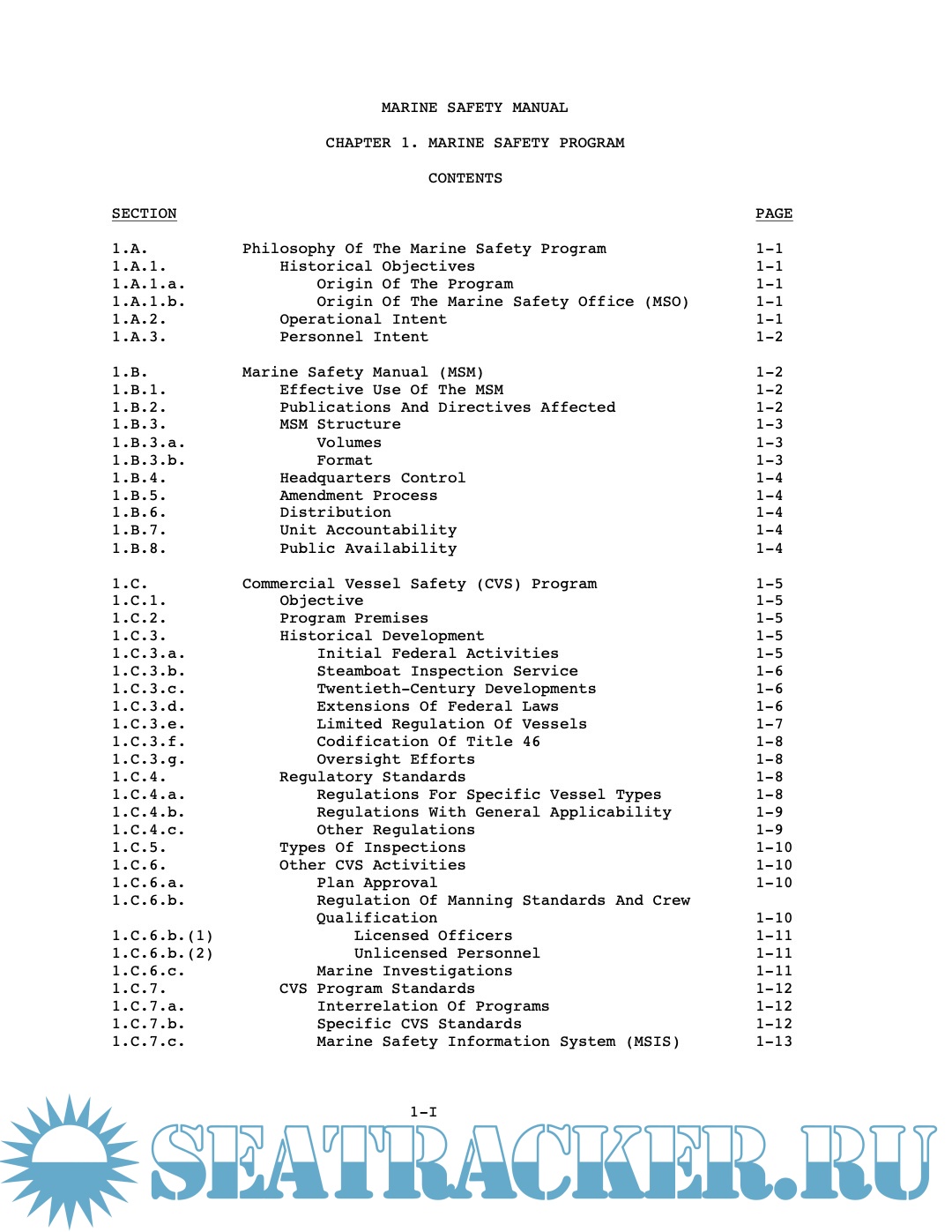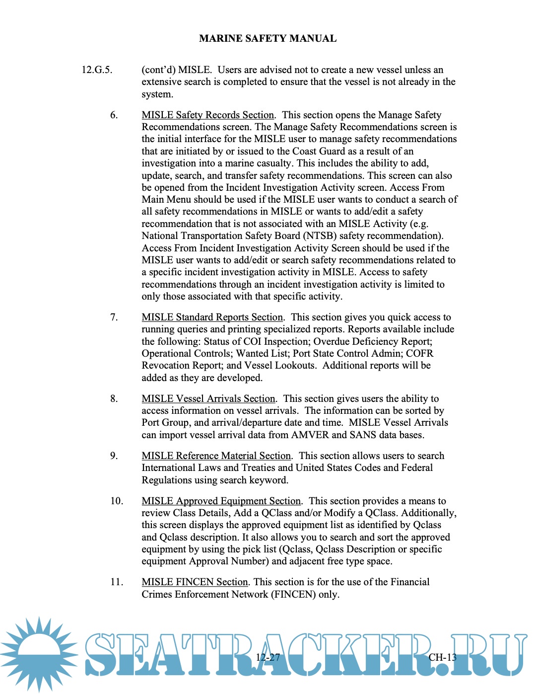 Description: The MSM is the primary policy and procedural statement for the marine safety programs of the Coast Guard. Published for the use of all Coast