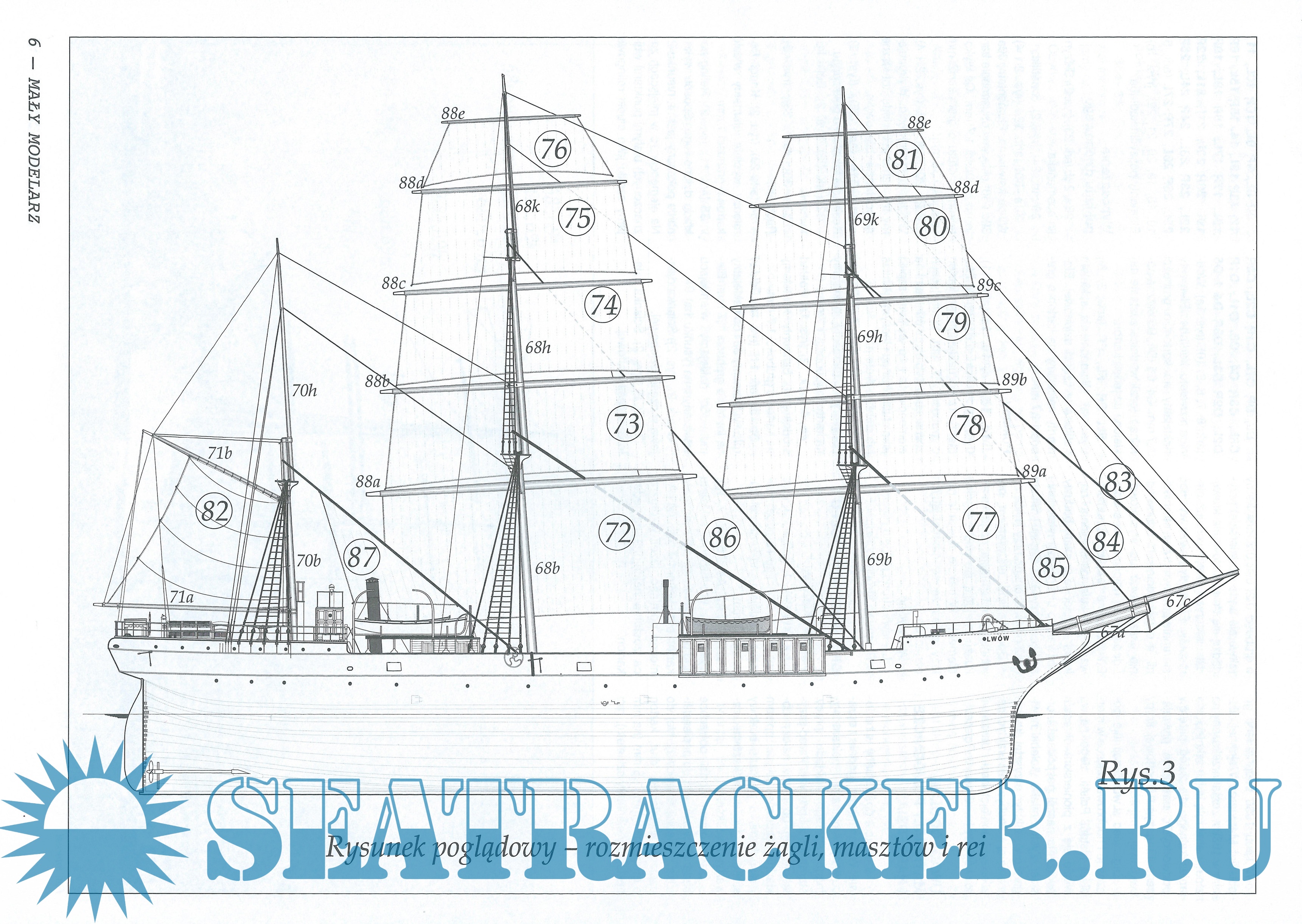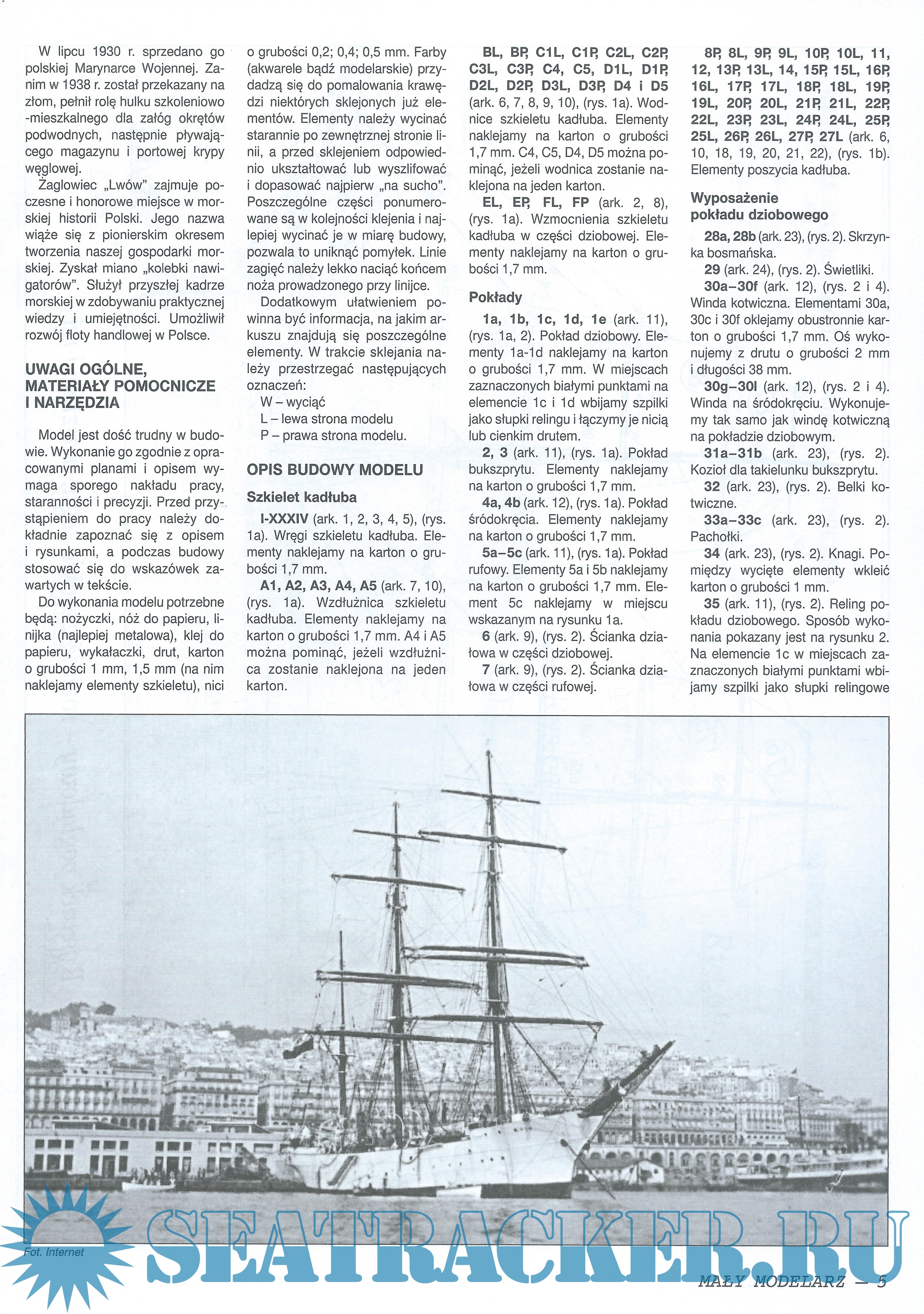 43 листа цветных выкроек и инструкций для изготовления бумажной модели польского парусника STS ''Lwów'' в масштабе 1:100Скриншоты