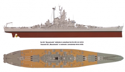 After the war the ship continued its service on the Pacific for a short period of time. In March 1947 it was transferred to the Atlantic Reserve Fleet based in Norfolk, where it stayed until June 1962. In that year the unit was discharged from the US Navy. Originally there was a plan to send the battleship to the scrapyard but thanks to the efforts of war veterans and Massachusetts state inhabitants the deserved unit was saved.
