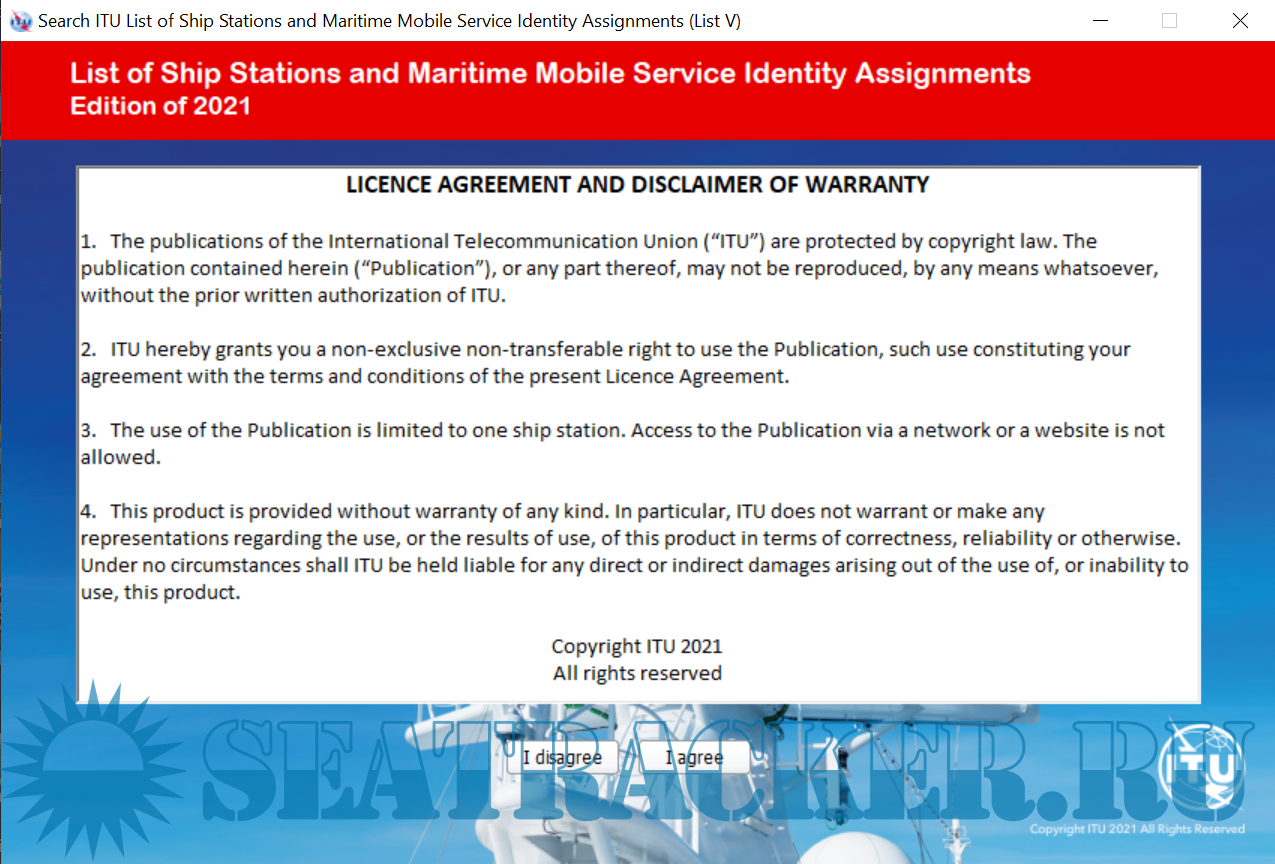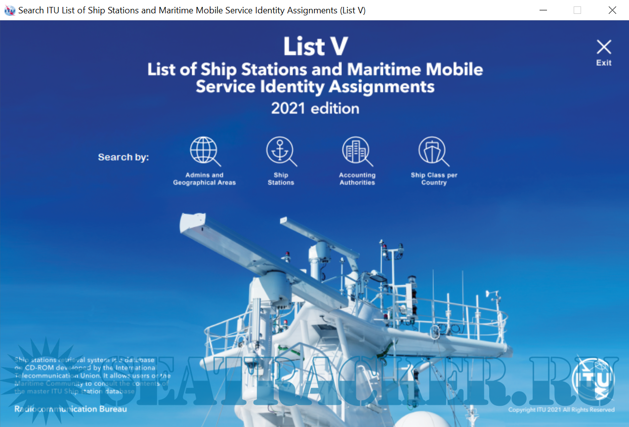Year: 2021 Language: english Author: ITU Format: EXE Quality: Unknown Pages count: 1 Description: The List of Ship Stations and Maritime Mobile Service Identity Assignments (List V) is a service publication prepared and issued, once a year, by the International Telecommunication Union (ITU), in accordance with provision no. 20.8 of the Radio Regulations (RR). As stipulated in Appendix 16 to the RR, this List shall be provided to all ship stations for which a Global Maritime Distress and Safety System (GMDSS) installation is required by international agreement.