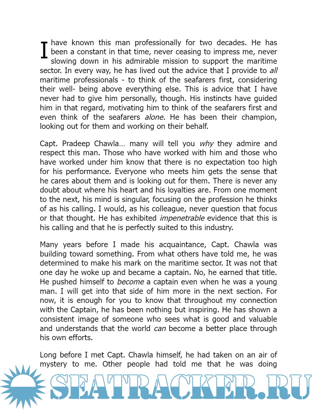 Capt. Pradeep Chawla - Role Model for Ship Managers
