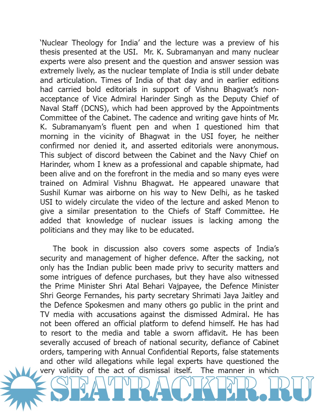 Description: On December 30, 1999, the then Atal Bihari Vajpayee Government took an unprecedented step of sacking it's temperamental but bright navy chief Admiral Vishnu Bhagwat for 'defiance of civilian authority'. This is an impartial account of the incident which shows that the swords were drawn against him much before he became the naval chief and the legal battles he fought to gain his rightful place. It also recounts the events leading to the withdrawal of the President's pleasure in respect of the Chief of the Naval Staff - the constitutional and legal norms which should have been duly followed.