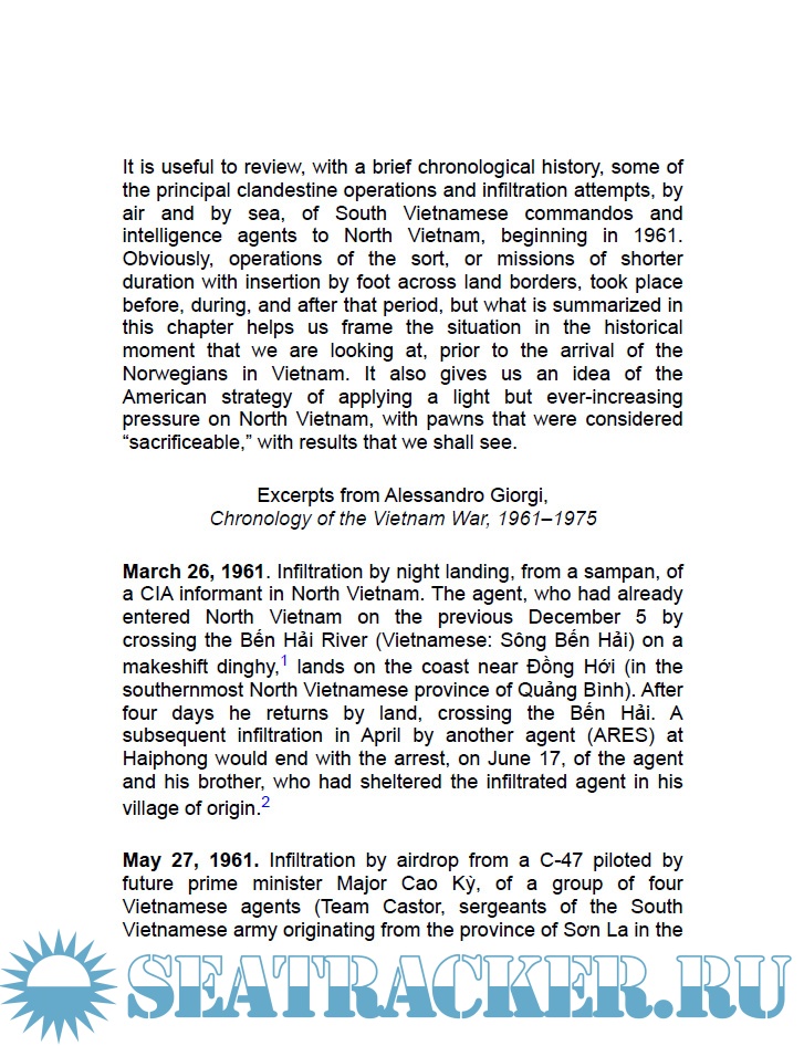 Year: 2024 Language: English Author: Alessandro Giorgi Genre: History Publisher: Schiffer Military History Format: PDF Quality: eBook Pages count: 207 Description: In a little-known episode of the Vietnam War, the CIA hired Norwegian skippers to command fast patrol boats to land South Vietnamese commandos and combat swimmers on the coasts of North Vietnam. This book will explain who the “Vikings” were, describe their missions, and detail their equipment (primarily Swift- and Nasty-class patrol boats). Author Alessandro Giorgi relied heavily on recently declassified source material to piece together the story.