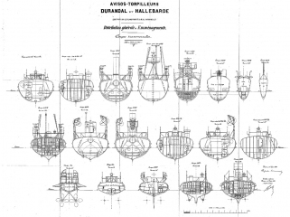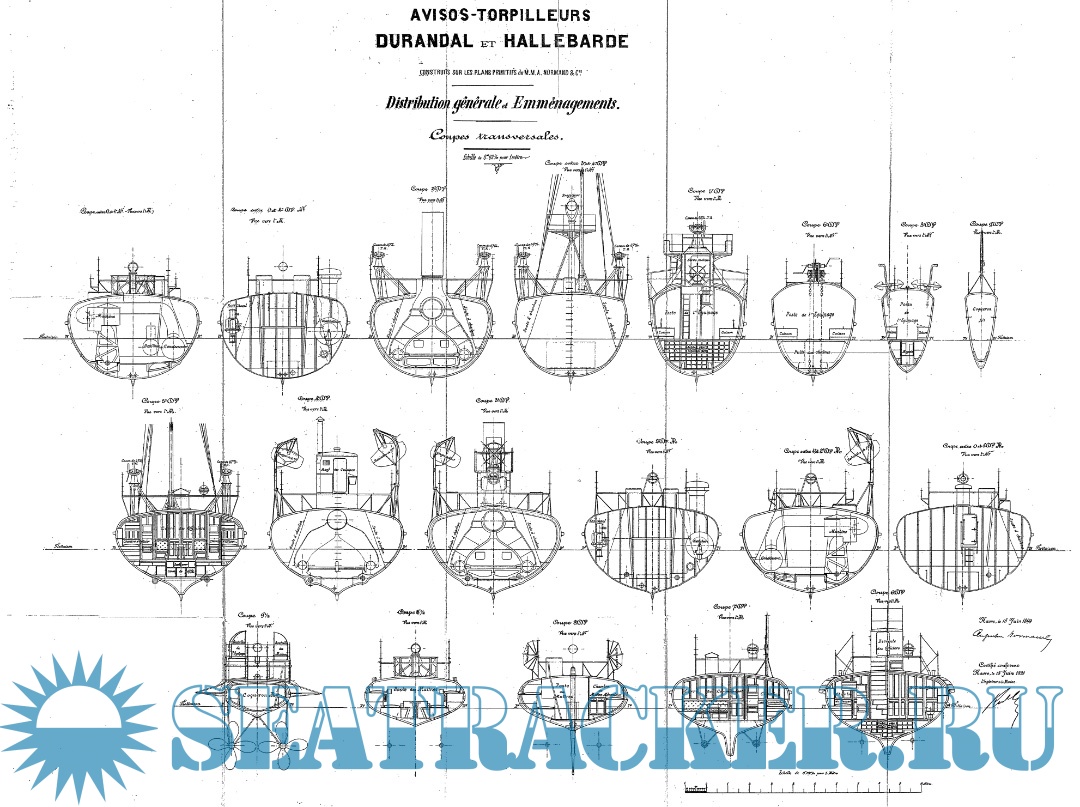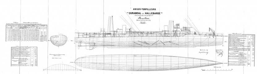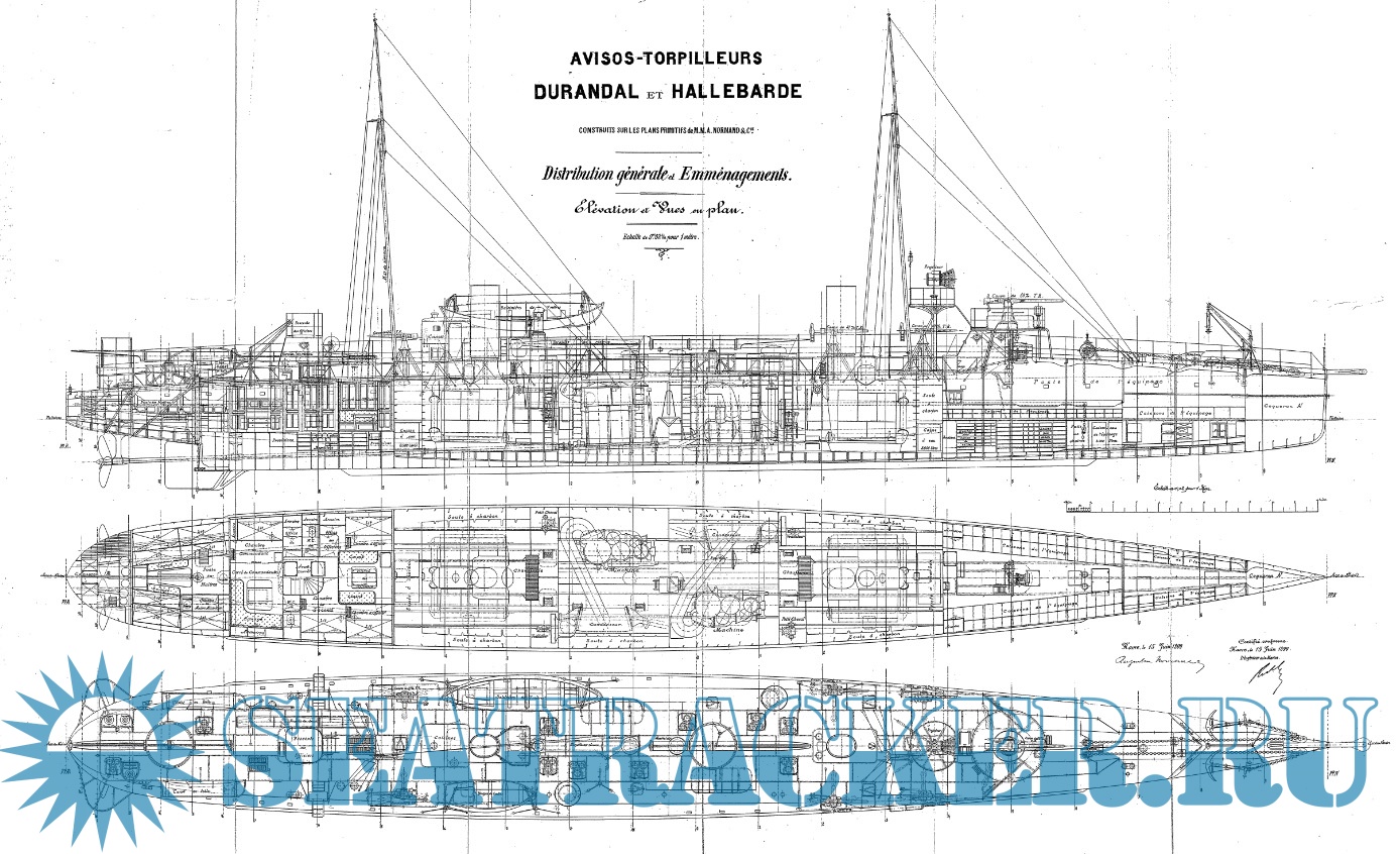 Архивные чертежи французского миноносца DURANDAL 1899 год
