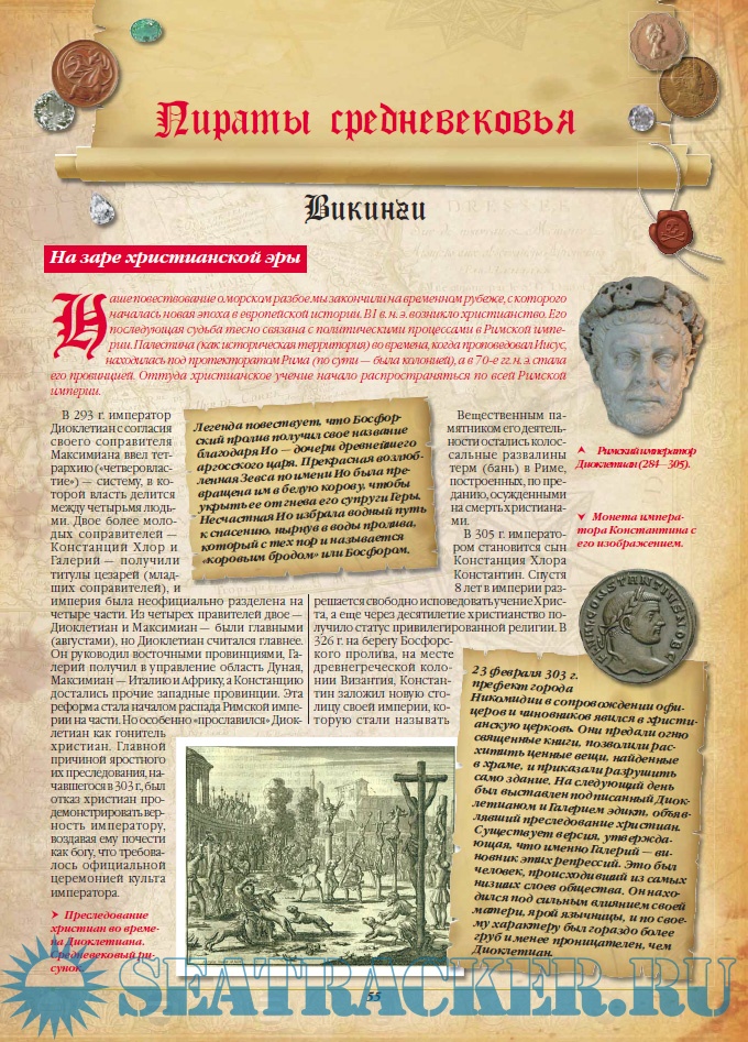 Данное издание расскажет об истории морских разбойников – от античных пиратов до флибустьеров Нового времени. Вы узнаете не только о том, кто такие пираты на самом деле и как возникло пиратство, но также много интересного о пиратском быте, их одежде, кодексе поведения, разновидностях кораблей, символике на флагах. Значительная часть книги посвящена легендарным, знаменитым на весь мир пиратам, среди которых были даже женщины!