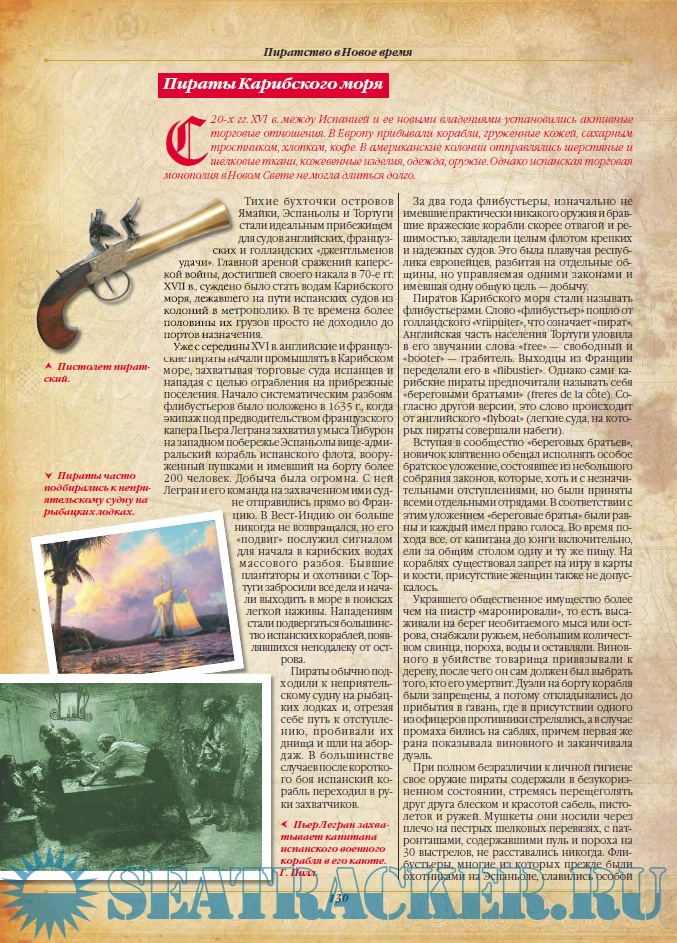 Описание: Когда мы слышим слово «пират», первое, что возникает в нашем воображении, – это одноглазый разбойник с бородой и ехидной усмешкой. А еще, конечно же, безграничное море, теплый ветер, солнце, палящее в небесах, огромный корабль с черным флагом и бесчисленные россыпи драгоценностей: золота, жемчуга, ценных монет! На самом деле все не так романтично, ведь пиратство – это разбой на море. А это, с одной стороны, нанесение ущерба морскому судну, убийство или взятие в плен людей, и значит, искалеченные судьбы многих и многих. С другой стороны, это – не только невероятные приключения, но и тяжелый быт, необычные судьбы, взлеты и падения, успехи и разочарования.