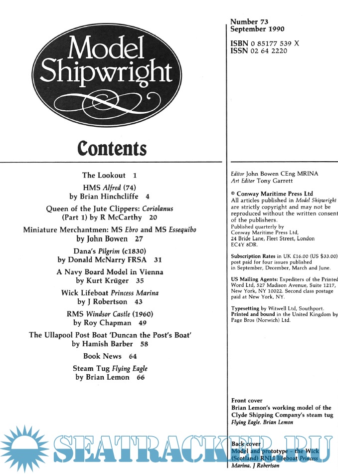 Description: The international quarterly journal for ship modelmakers since 1972. Covering a wide variety of articles on all aspects of ship modelling, from the miniature ships themselves to the dioramas around them. Each issue complete with free large-scale modeller's draught. This quarterly journal, since its launch in 1972, has been regarded as the world's leading ship modelling publication. The mixture of articles, reviews, news and comment from modelmakers world-wide provides the best and most detailed information available anywhere, and is enhanced with authentic plans, clear diagrams and many photographs. Although the miniature ships are the most important feature of the journal, with articles explaining how individual models were researched and constructed, the other aspects of model making have not been forgotten - dioramas, modelling techniques, tools, and recent events are all covered. Each issue of the journal comes complete with a free large-scale modeller's draught with accompanying modelling notes, illustrations and specifications for a featured vessel.