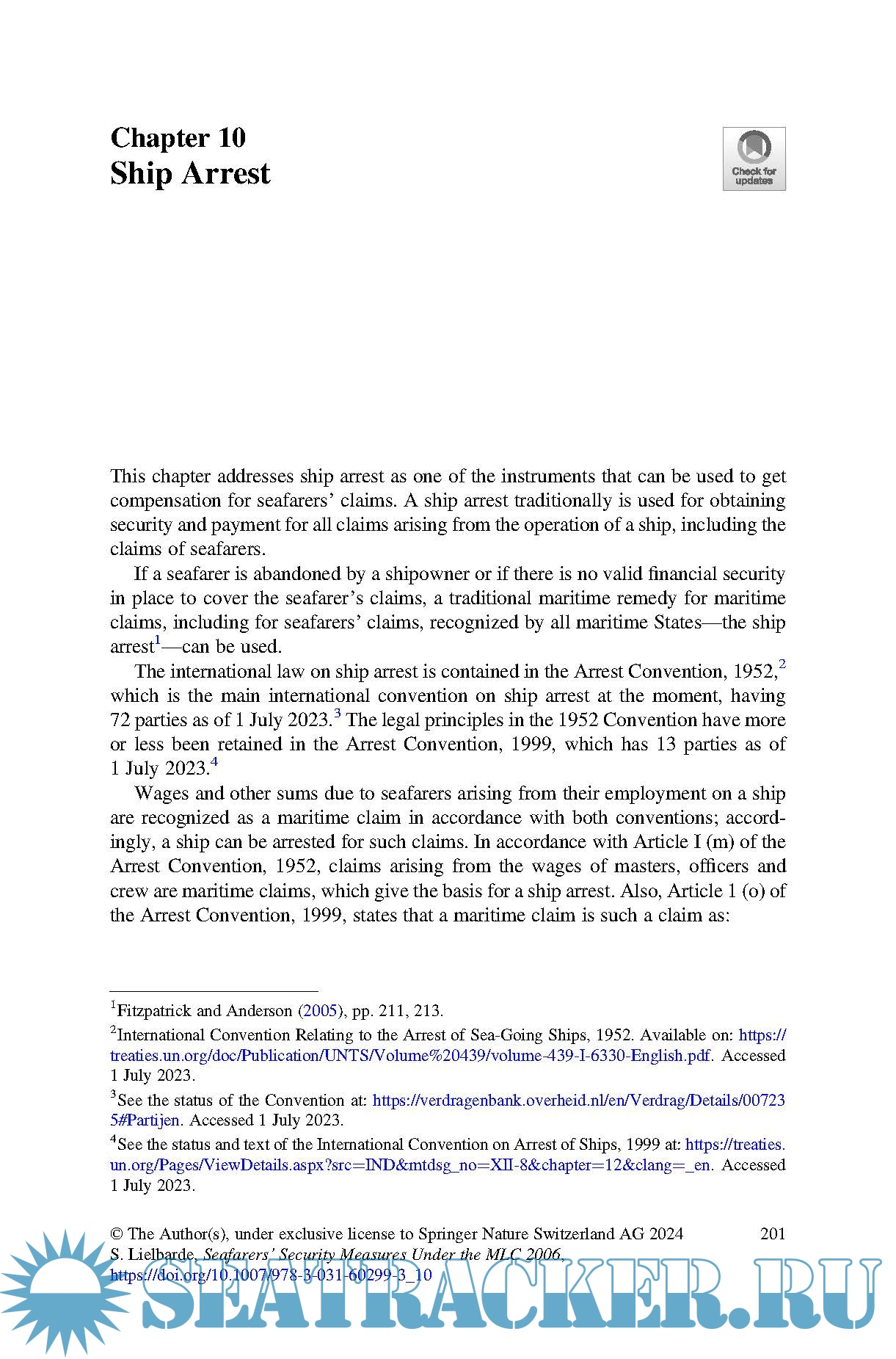 Year: 2024 Language: English Author: Sandra Lielbarde Genre: Textbook Publisher: Springer Edition: 1st (Kindle edition) ISBN: 9783031602986 Format: PDF Pages count: 220 Description: The book is intended to be about the Maritime Labour Convention 2006 (MLC 2006), about seafarers' security measures available before MLC 2006 and after its adoption. The following security measures will be addressed in the book: mandatory financial security established by the MLC 2006, flag State responsibility, labour supplying responsibility, port State control, and a ship arrest. The responsibility of the shipowner in respect of the seafarers engaged in work on his ship will be discussed in analysis of nowadays seafarers' recruitment process and a legal structure of shipping companies. Content will include the analysis of international (UNCLOS, ILO and IMO conventions, UNCCRO's, and Vienna Convention on Consular Relations 1963) and national law (Denmark, Estonia, Finland, Germany, Latvia, Norway, The Philippines, and The UK), and relevant legal documents - agreements, guidelines, and court cases.