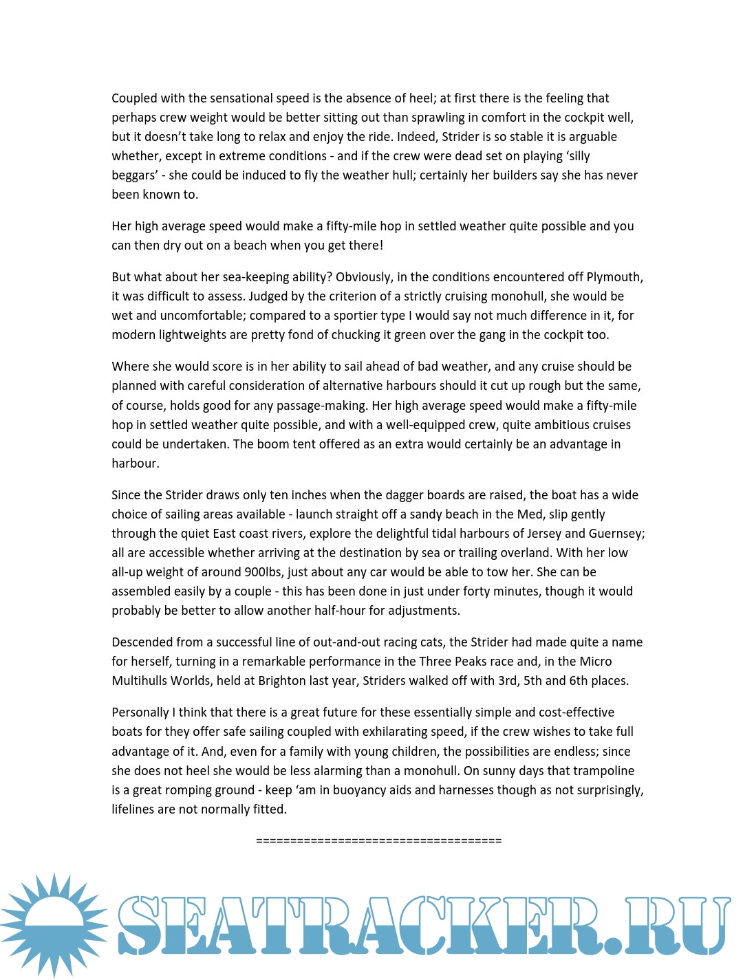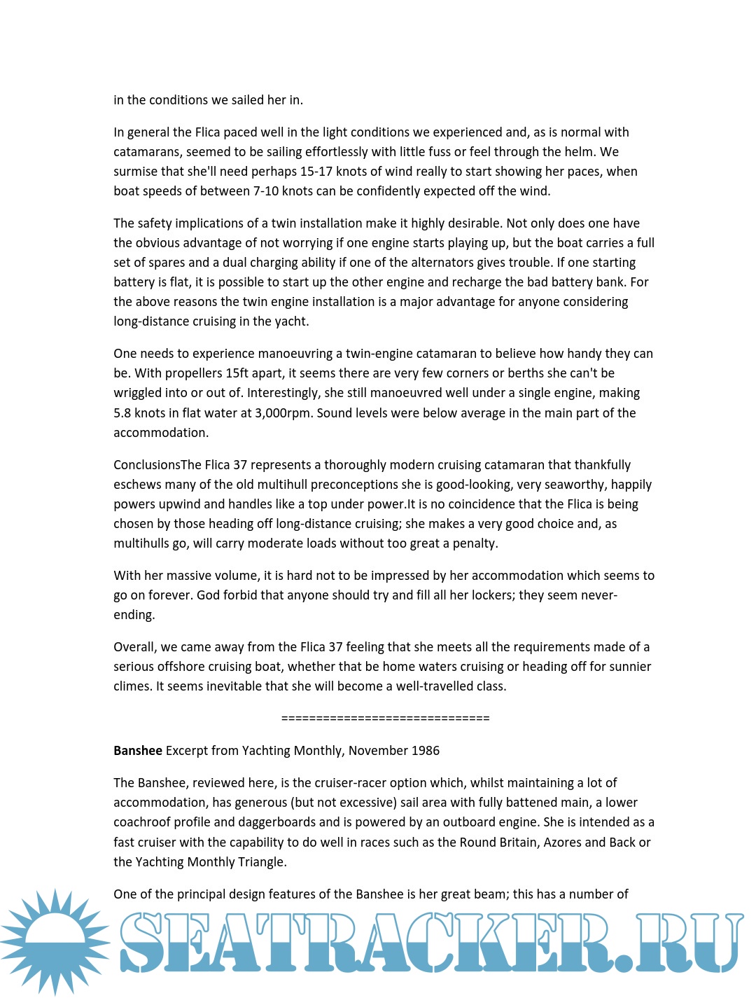 Description: Over the years a number of magazines have conducted boat tests on both our production and home builder designs. Note, for copyright reasons some of the tests are abbreviated. However, full copies of the tests should be available (at a price) directly from the magazines.