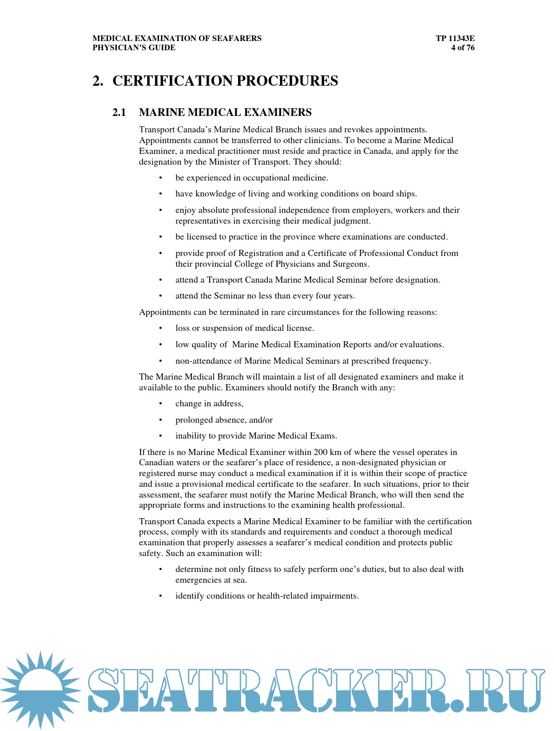 • sets out the factors designated Marine Medical Examiners should take into account when conducting medical examinations;