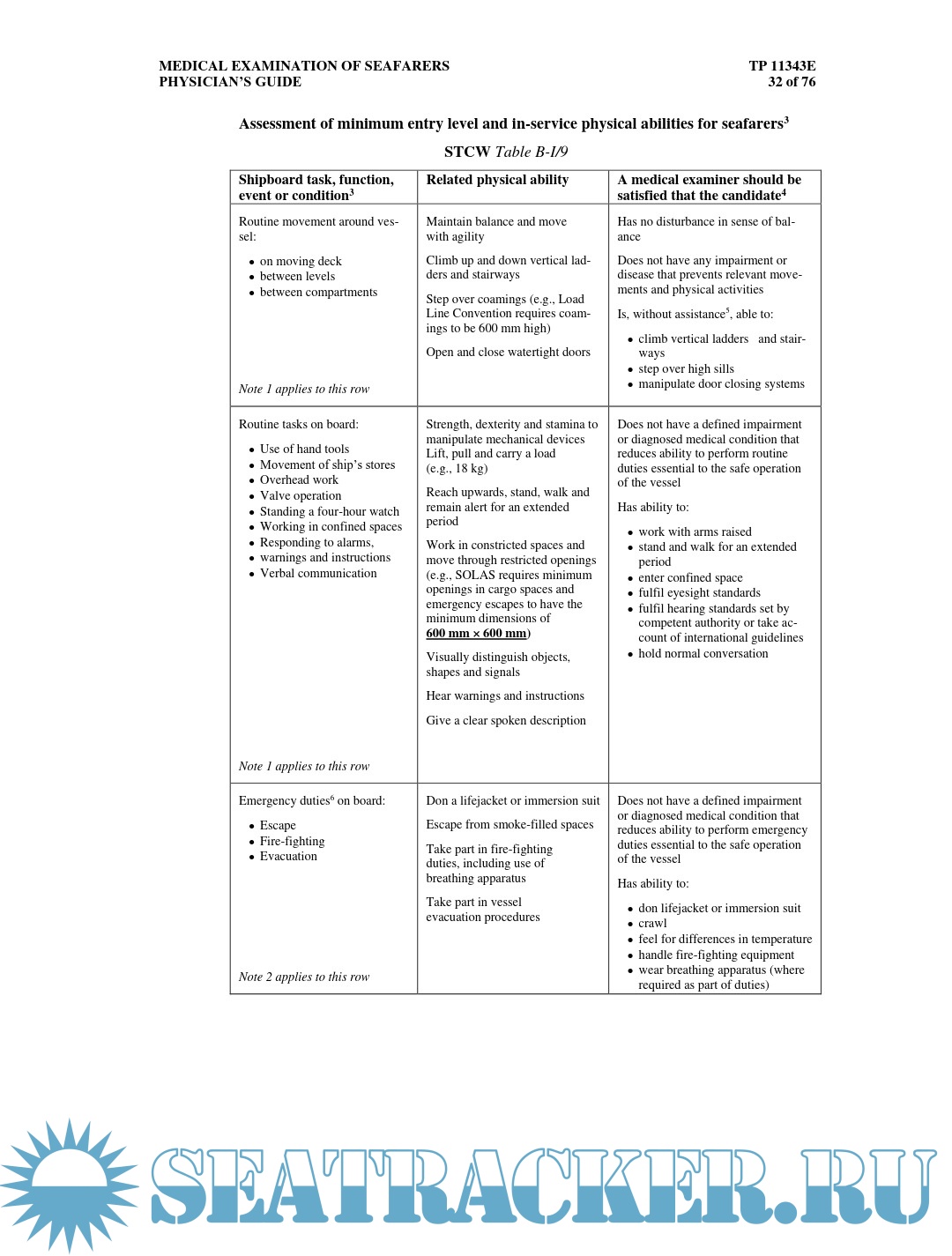 • highlights the physical requirements seafarers need to meet in order to receive a medical certificate;