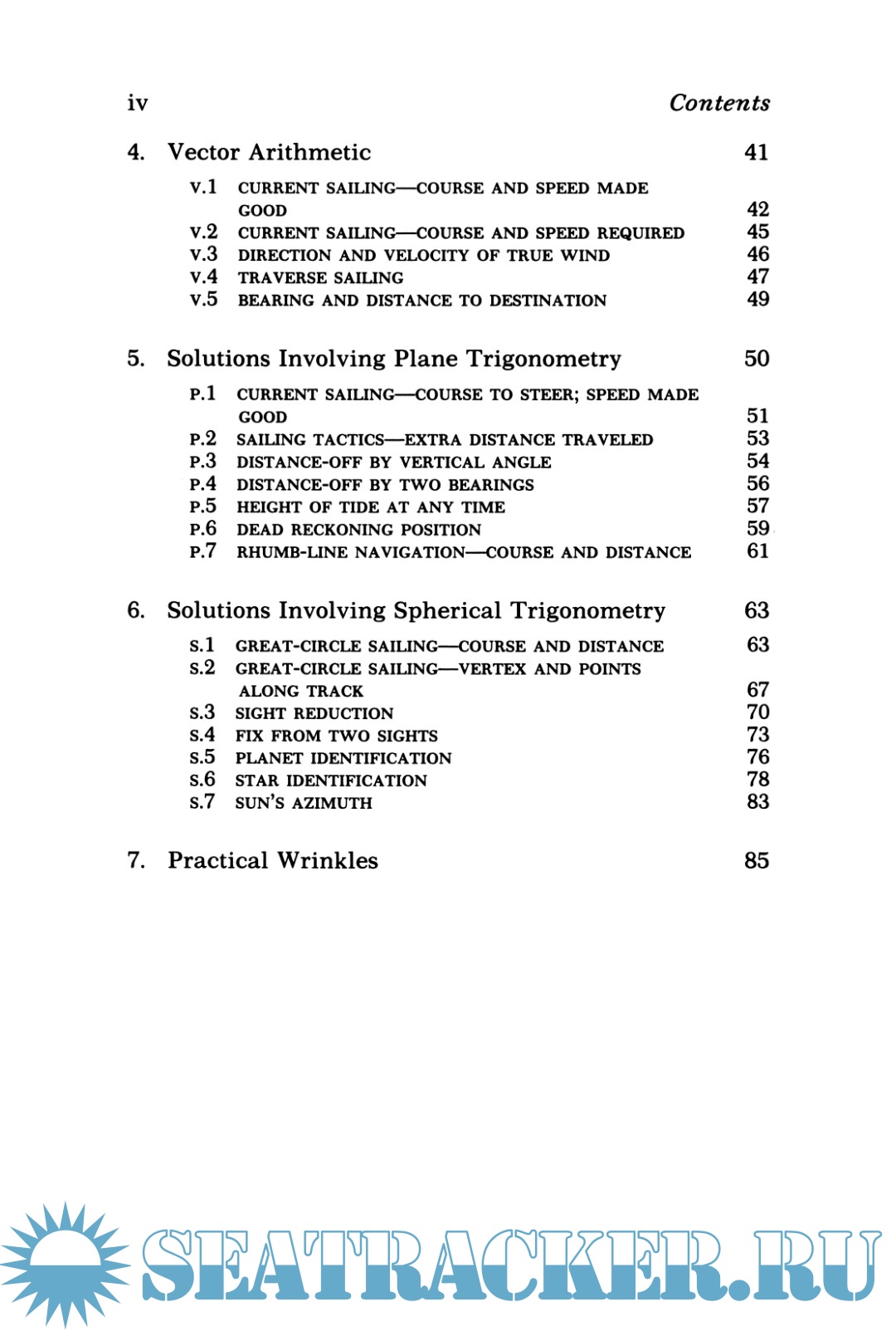 The list of programs includes the principal exercises encountered by the small-boat navigator under way, as well as some additional ones useful in deriving auxiliary and planning information. The programs themselves have been designed with the yachtsman in mind, and were selected, developed and thoroughly tested in the course of a
