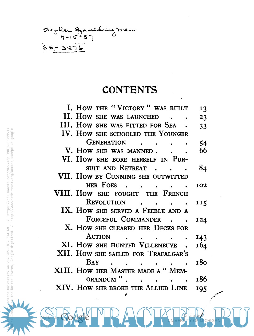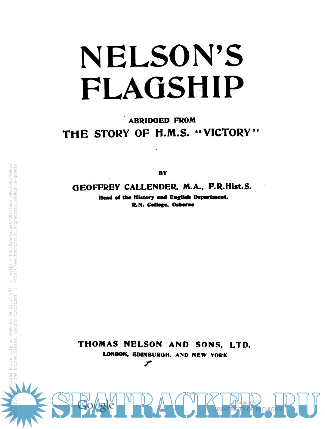 Description: The story of England's most famous ship: "Victory." Nelson's Flagship and her part in the Battle of Trafalgar. Contents Include: How the "Victory" was built. - How she was launched. - How she was fitted for sea. - How she schooled the younger generation. - How she was manned. - How she bore herself in pursuit and retreat. - How by cunning she outwitted her foes. - How she fought the French Revolution. - How she served a feeble and a forceful commander. - How she cleared her decks for action. - How she hunted Villeneuve. - How she sailed for Trafalgar's bay. - How her Master made a "Memorandum." How she broke the Allied line.- How her Master lay in the cockpit while the battle thundered above. - How she signalled sad news to the Fleet. - How she weathered the storms and reached her last anchorage.
