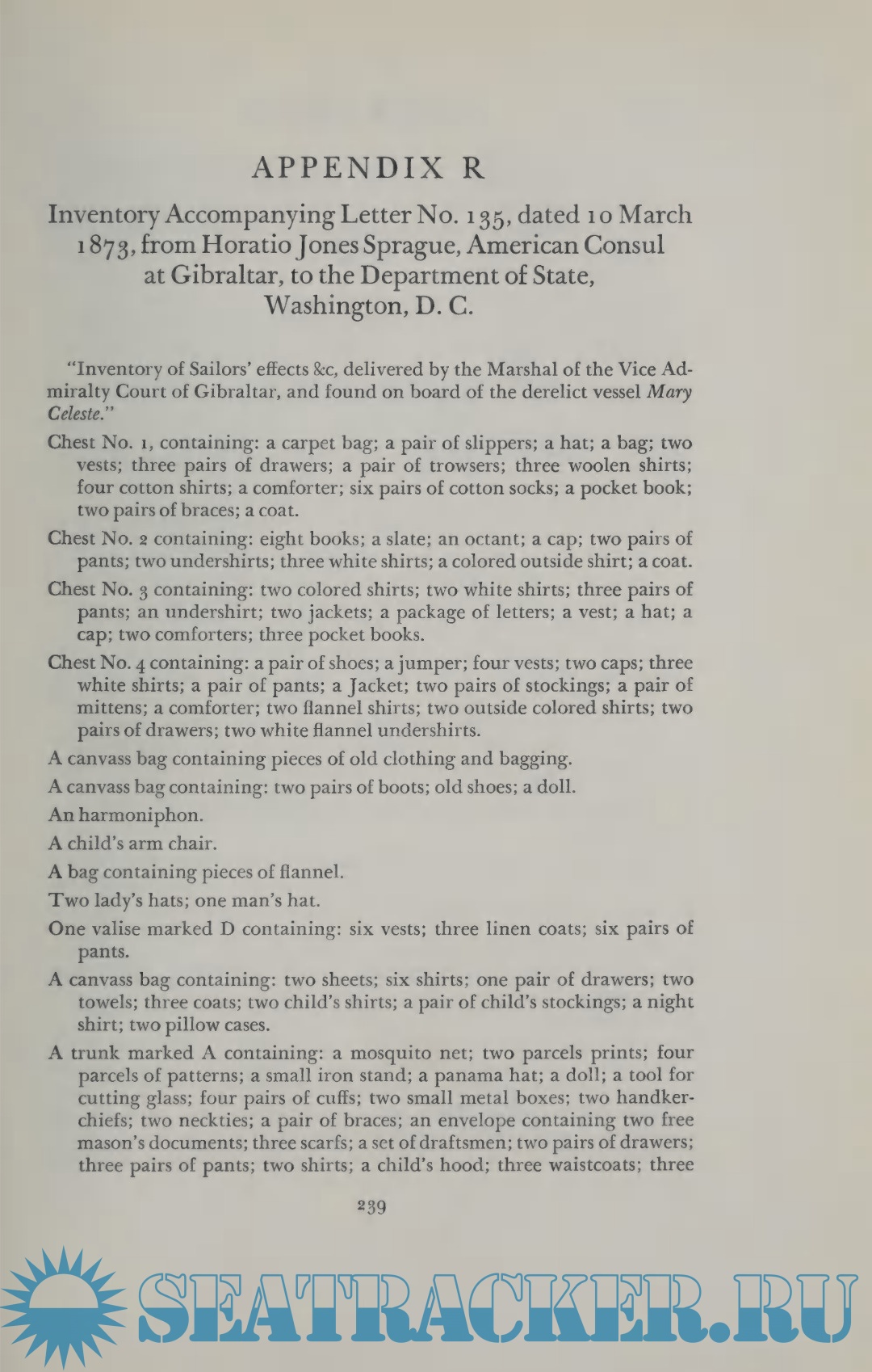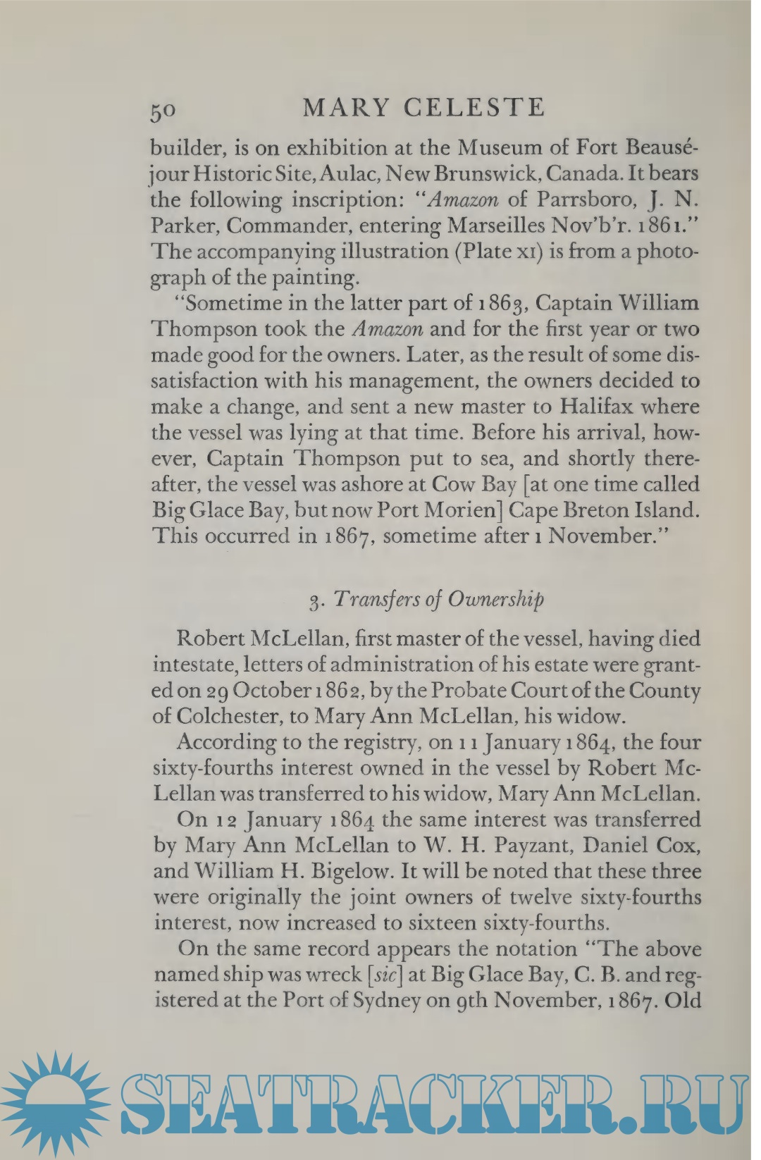 Year: 1942 Language: English Author: Fay C.E. Publisher: Peabody Museum Format: PDF Quality: eBook Pages count: 324 Description: For almost threescore years and ten, the story of the Mary Celeste—a small, seaworthy, American half-brig found wandering, ghostlike, without master or crew, over the waters between the Azores and the coast of Portugal—has continued to allure the interest of people all over the world, and to excite seemingly endless speculation on the part of “those who go down to the sea in ships.”
